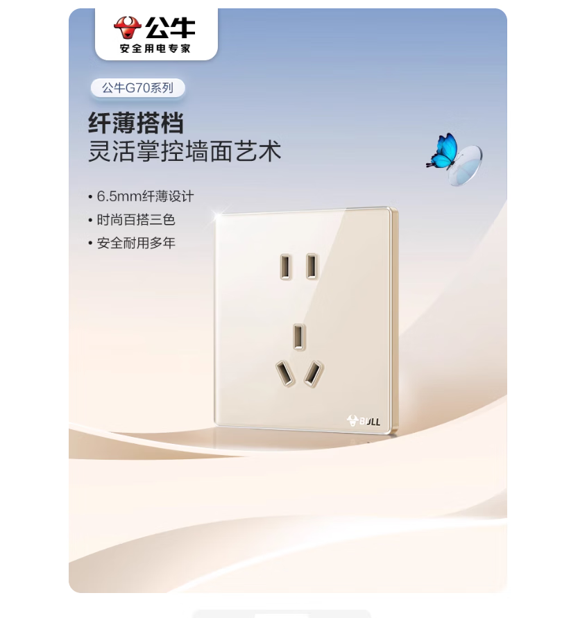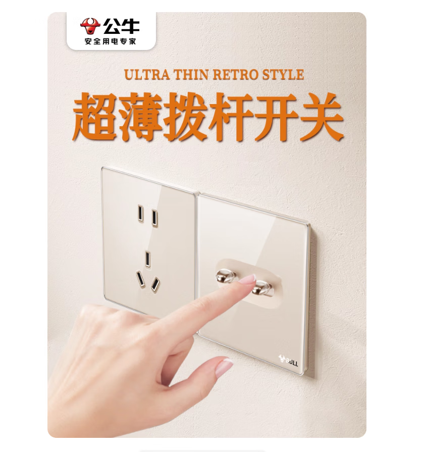 Bull G70 retro socket panel with lever, cream gold plexiglass socket, three USB five holes