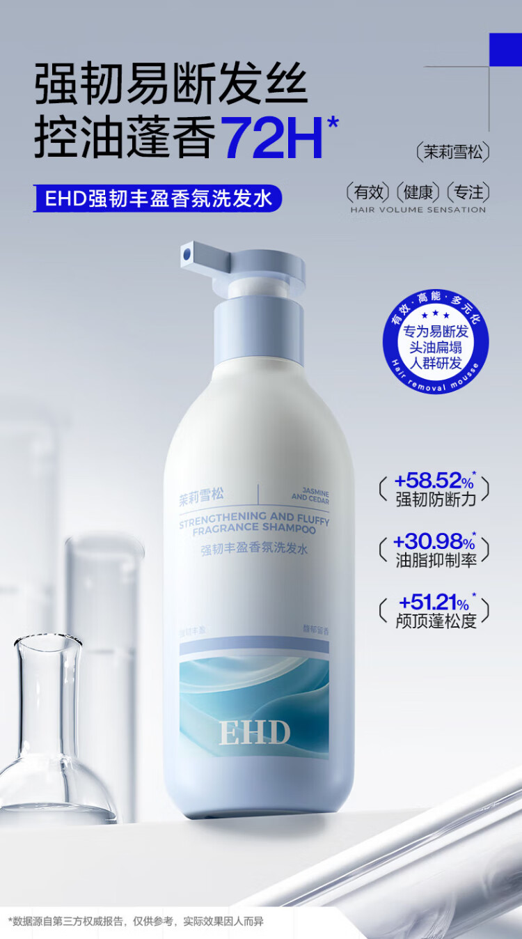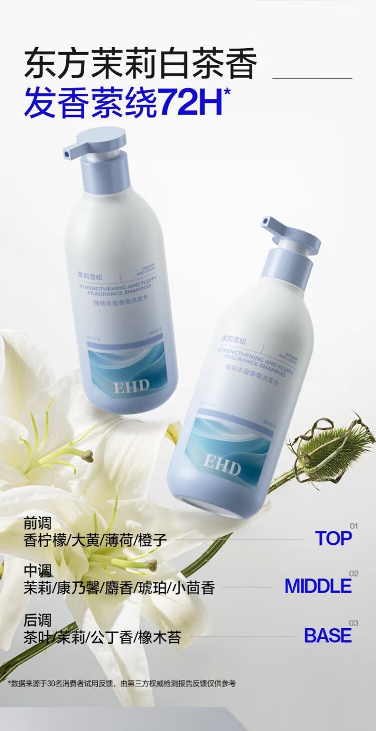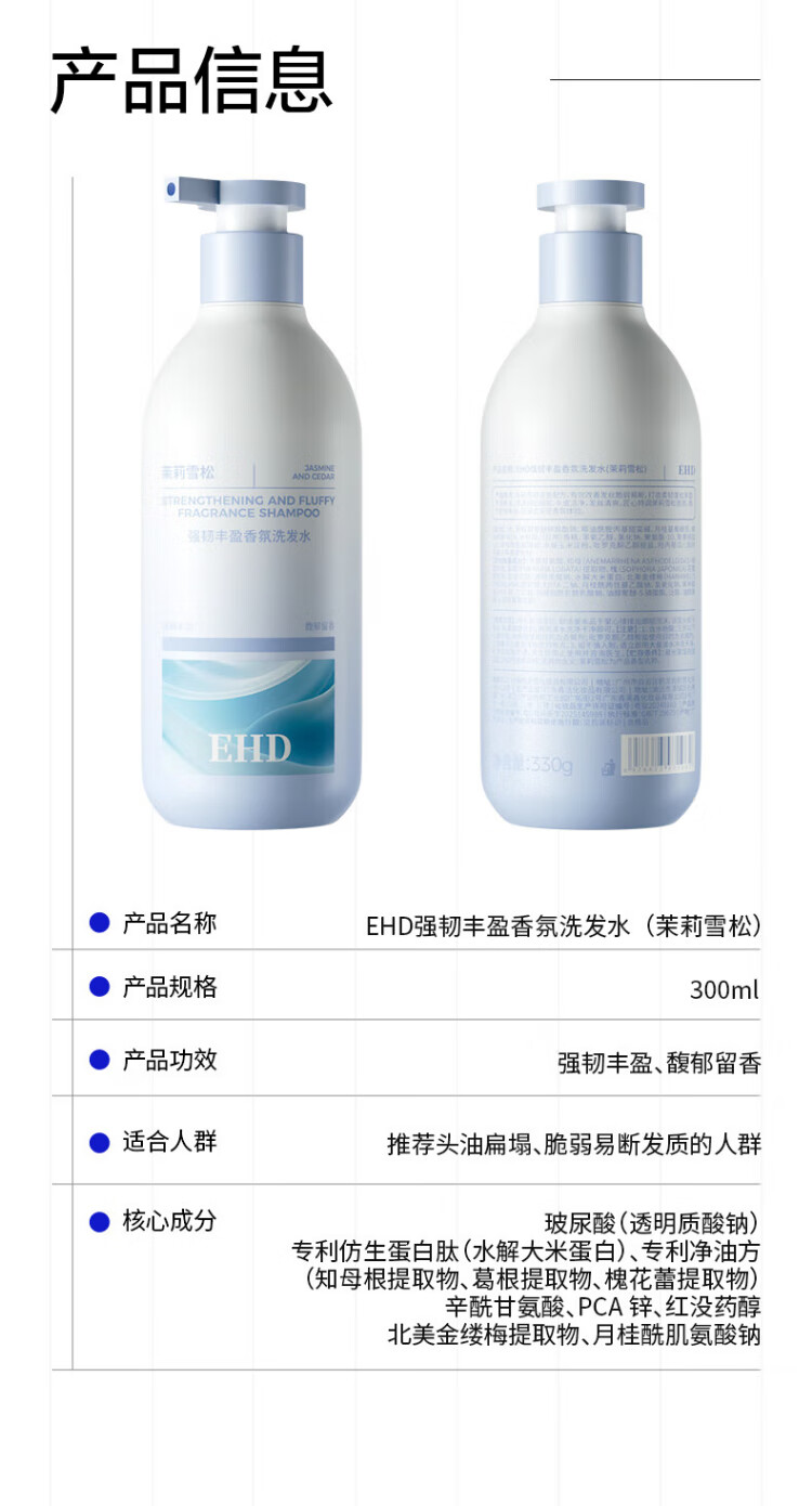 EHD Strong and Rich Fragrance Shampoo 330g Oil Control Fluffy and Smooth Clean Scalp Jasmine Cedar Fragrance Shampoo