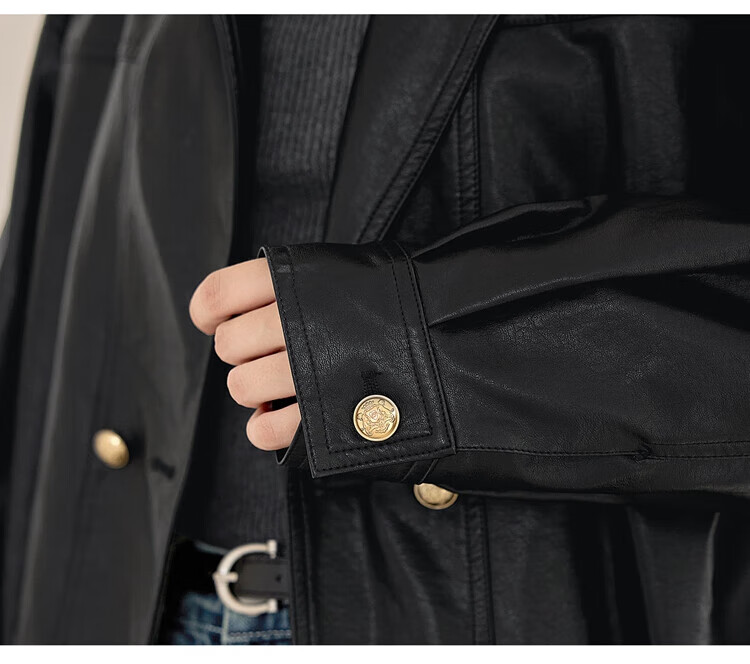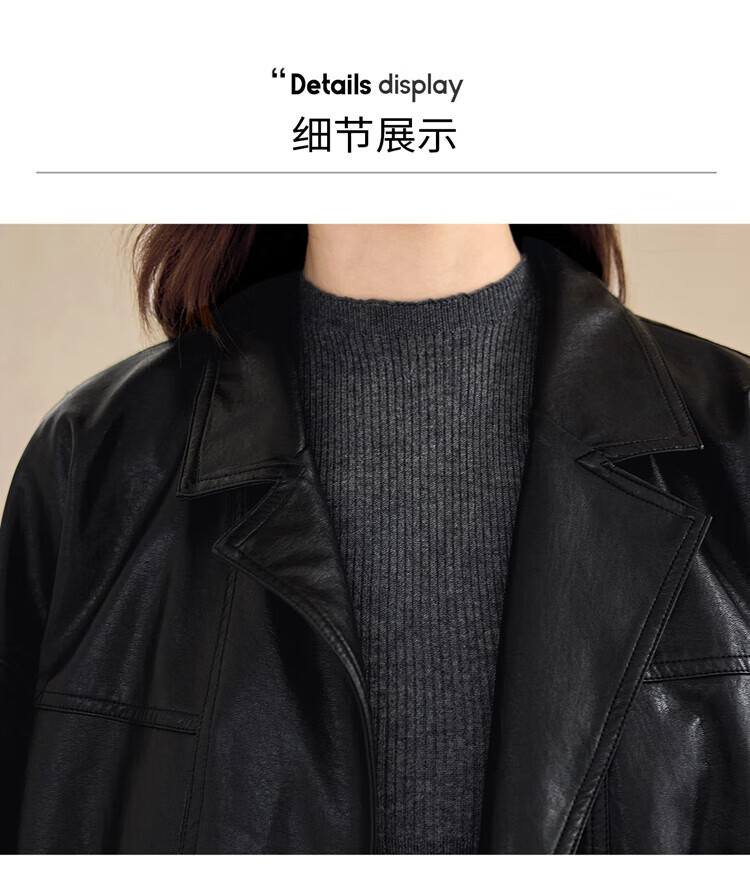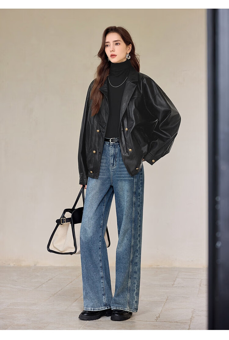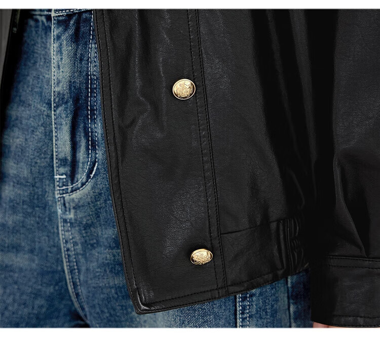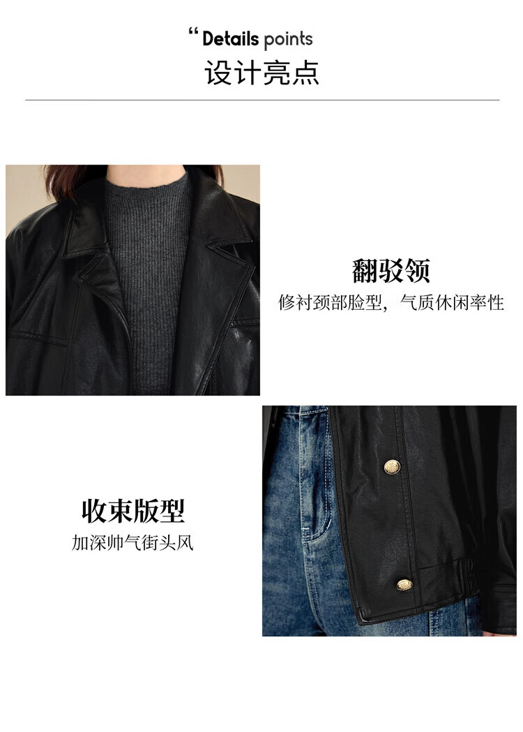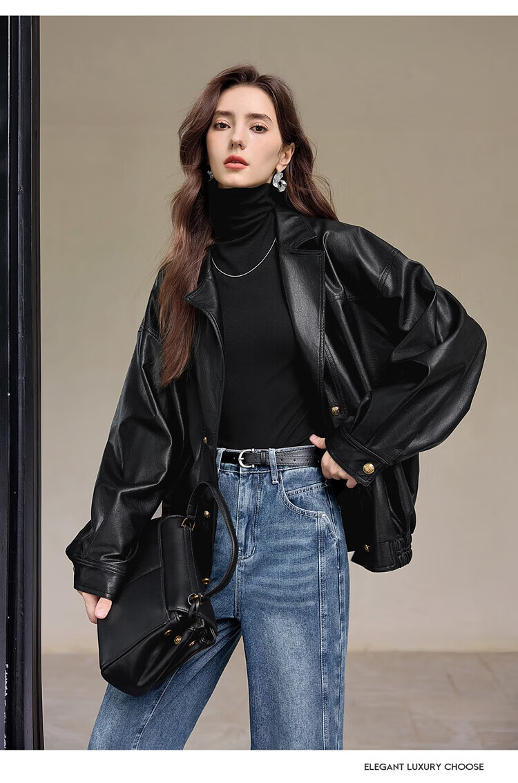 她池帅气PU皮机车夹克女2025秋装新款西装领宽松显瘦外套