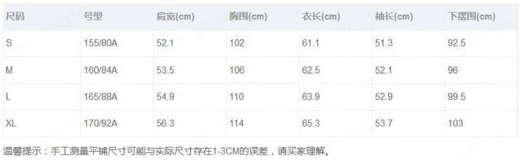 China (cm) 160-165/84-86 165-170 / 88-90 167-172 / 92-96 168-173 / 98-102 170-176 / 106-110