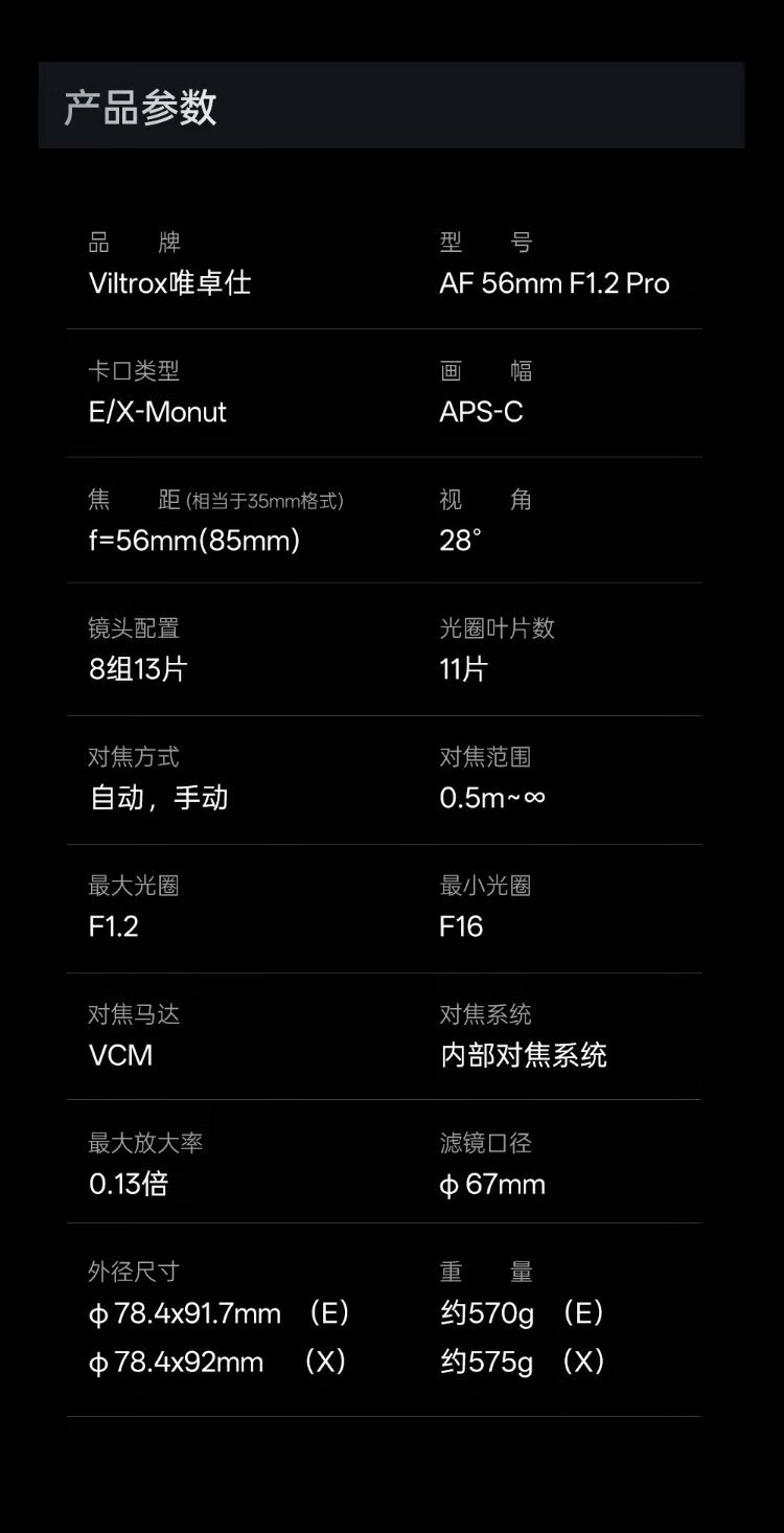 VILTROX AF 56mm F1.2 Pro XF Fuji mouth autofocus large aperture portrait photography fixed focus lens suitable for XT5 XE4 XM5 XS20 XH2S mirrorless cameras