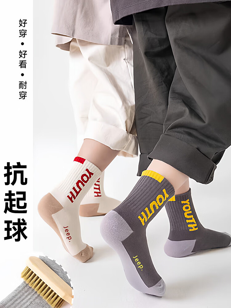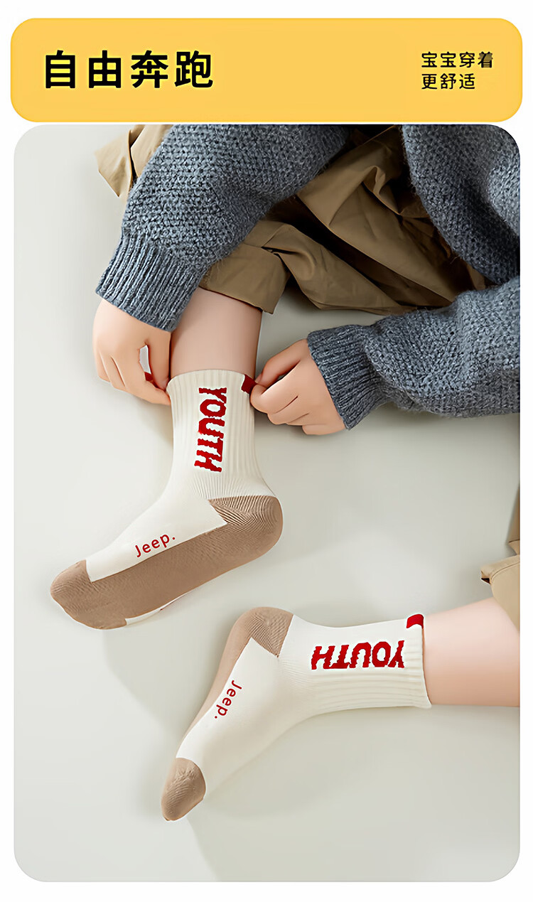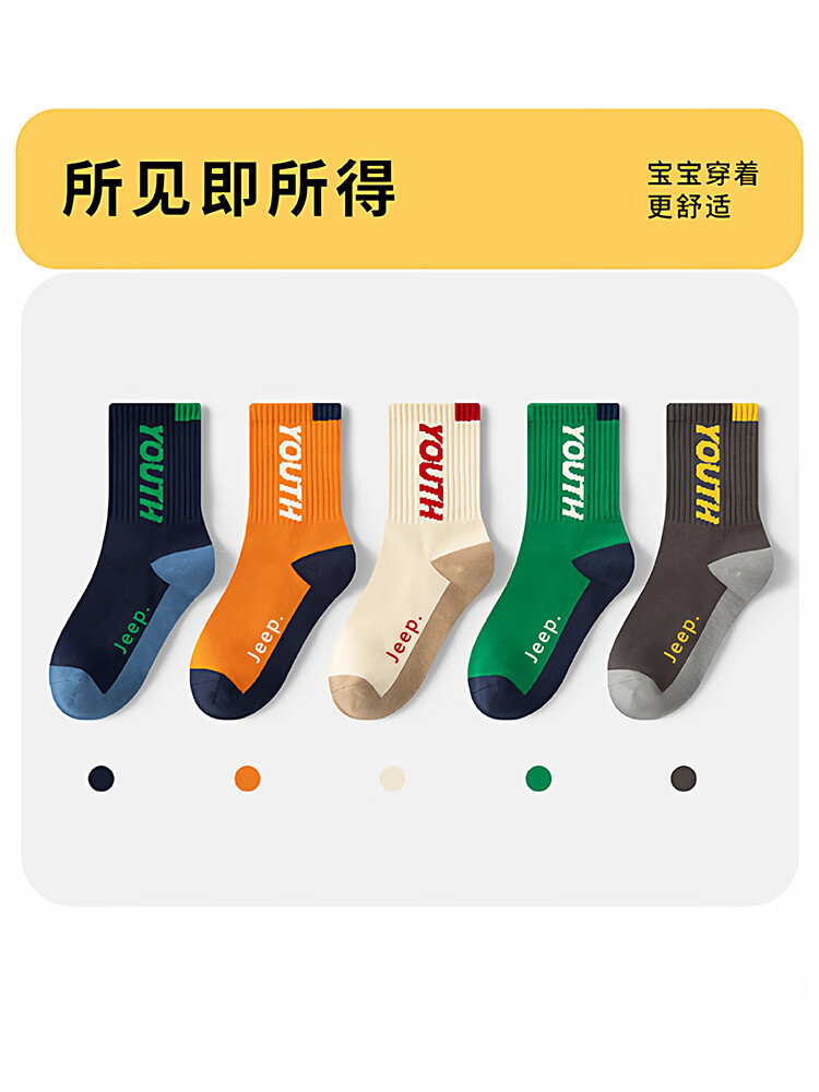 Jeep Boys Socks Autumn and Winter 100% Cotton Socks Youth Antibacterial Deodorant Sports Children's Small, Medium and Large Children's Medium Socks