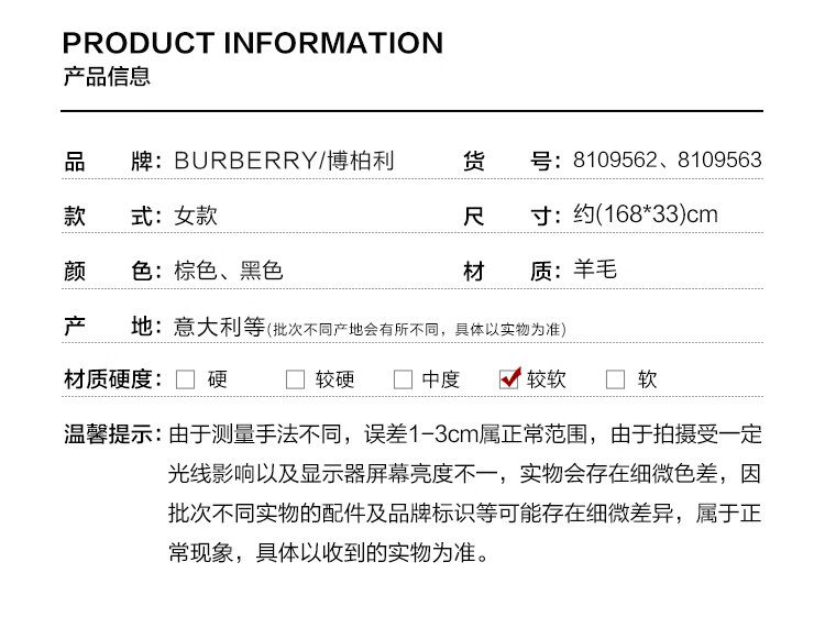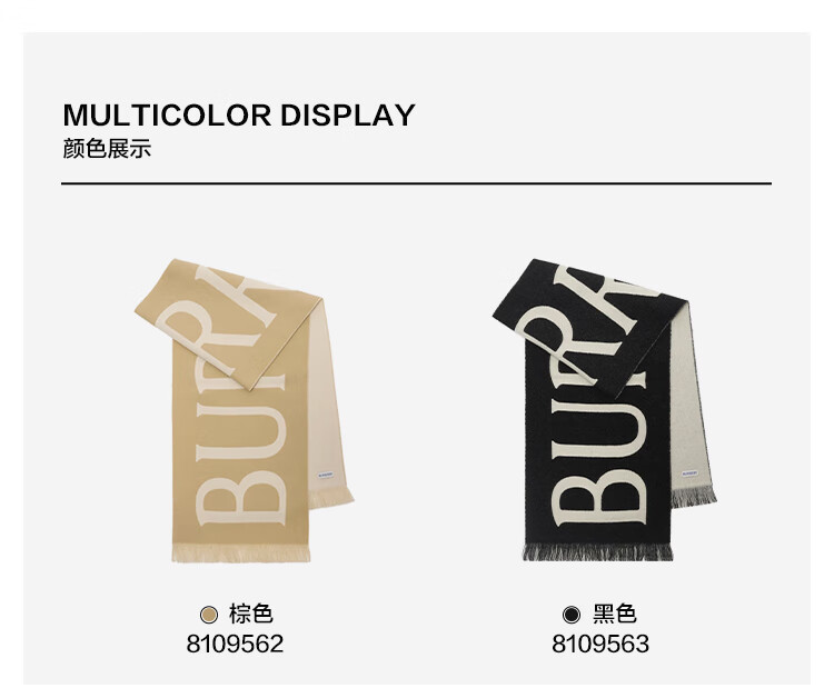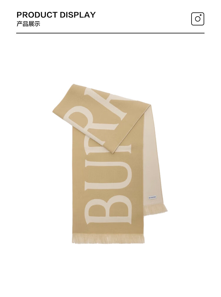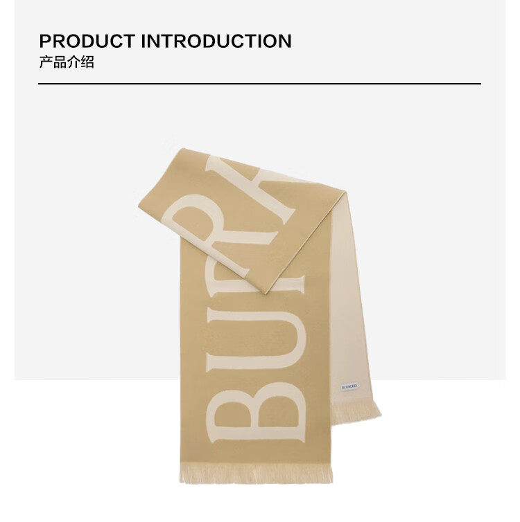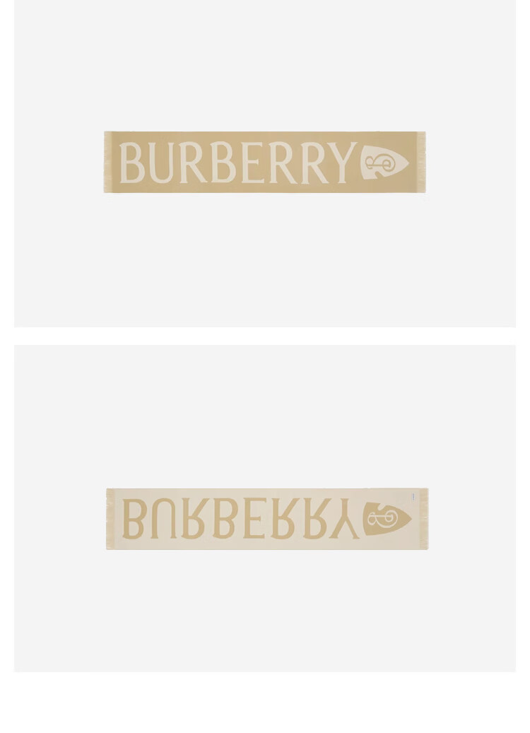 BURBERRY wool scarf logo decoration logo letter shield pattern thin fringe decoration beige 8109562