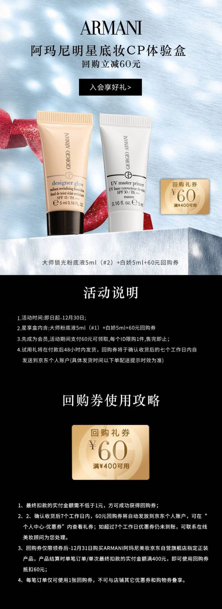 Armani Base Makeup White Jiao Makeup Primer Master Liquid Foundation CP Experience Box Light and Moisturizing for Dry Skin, Large Repurchase Coupons