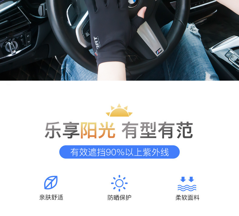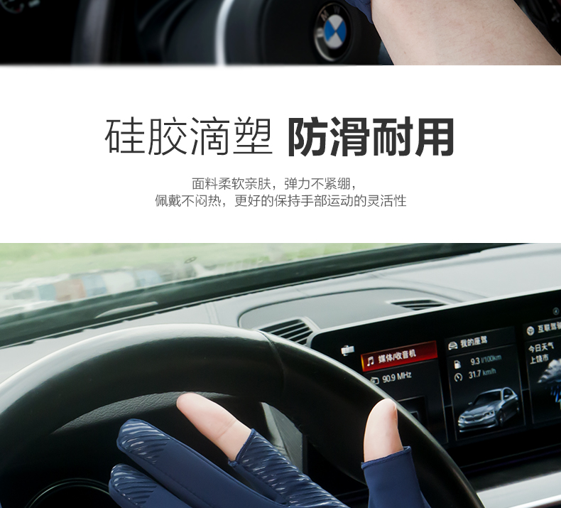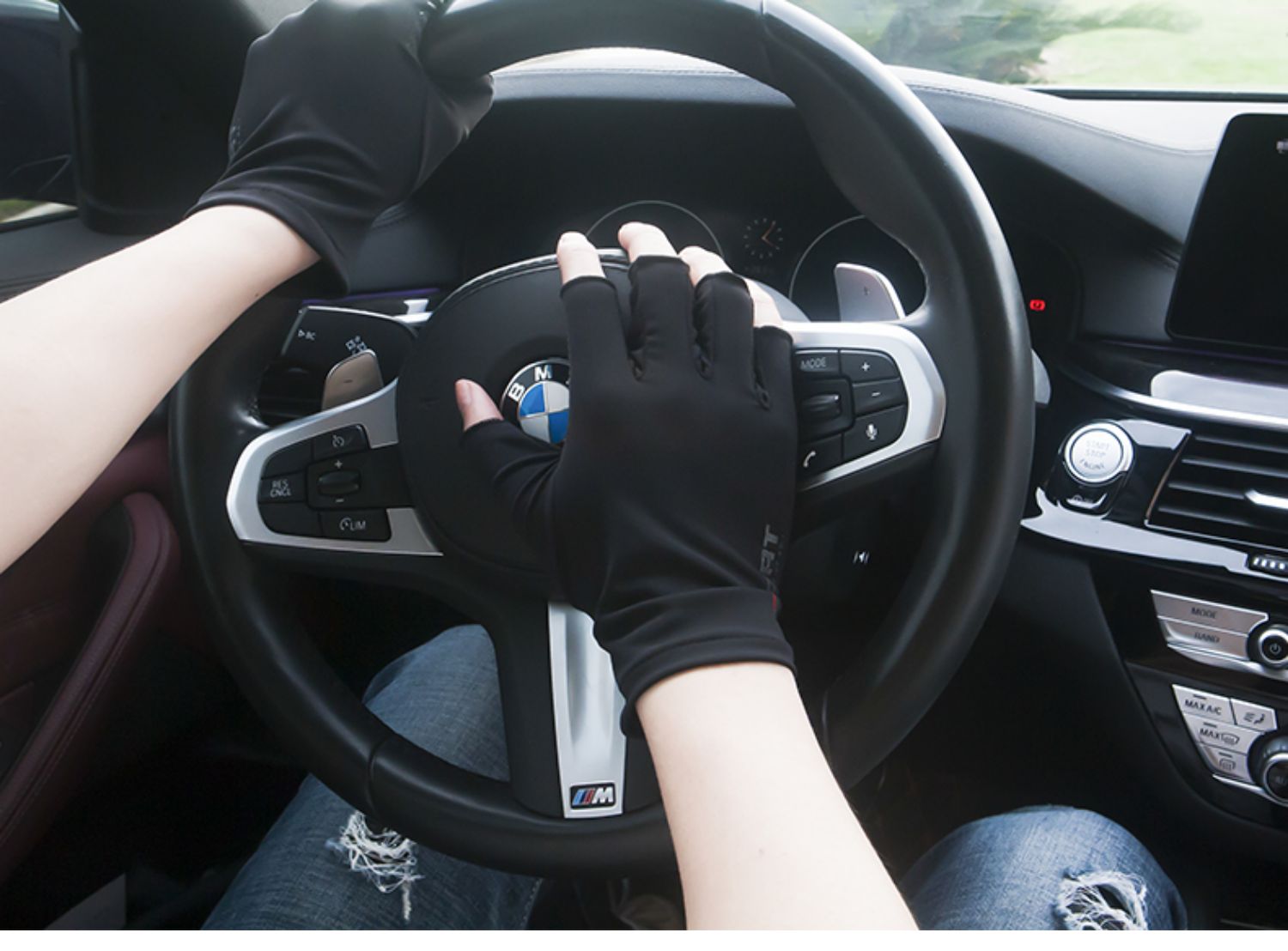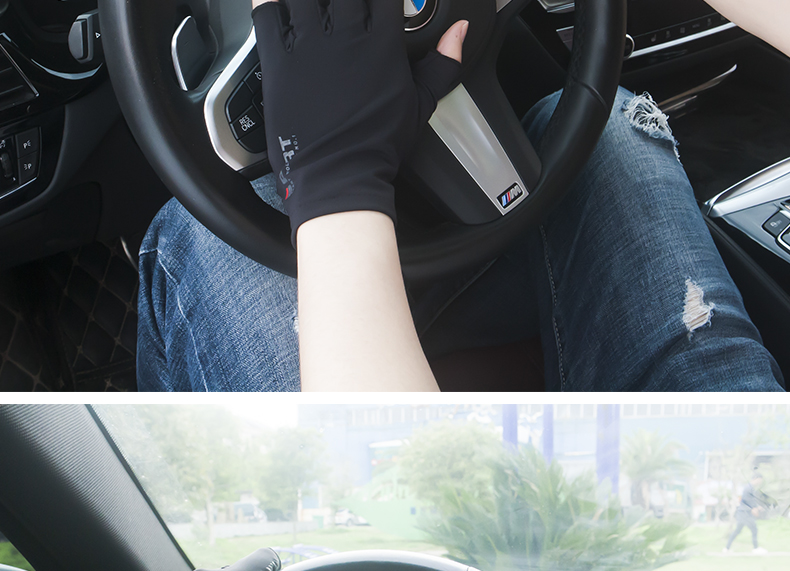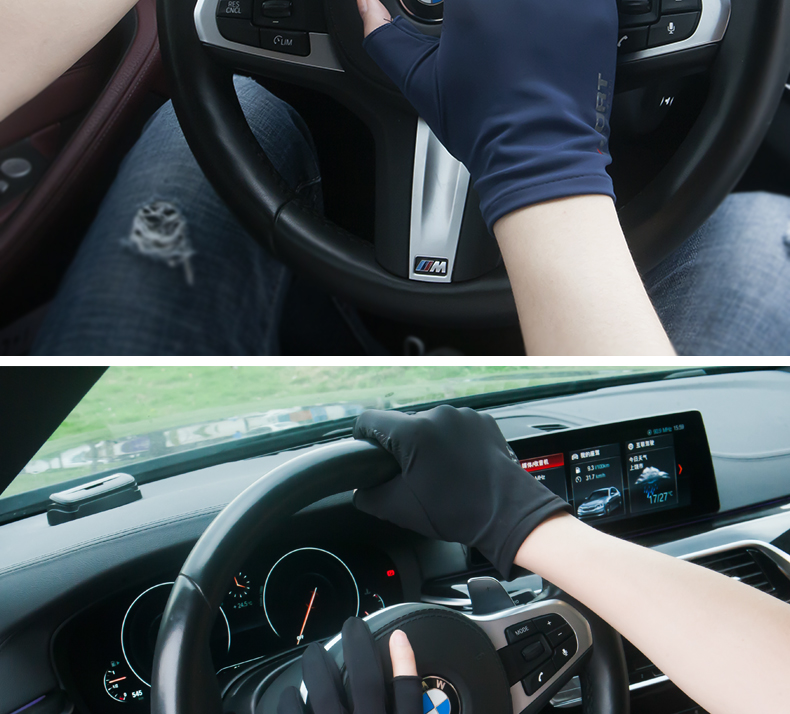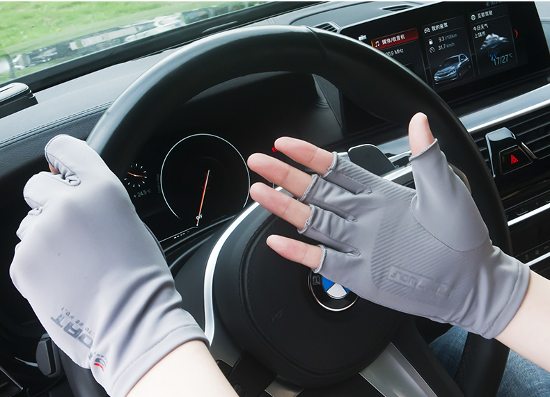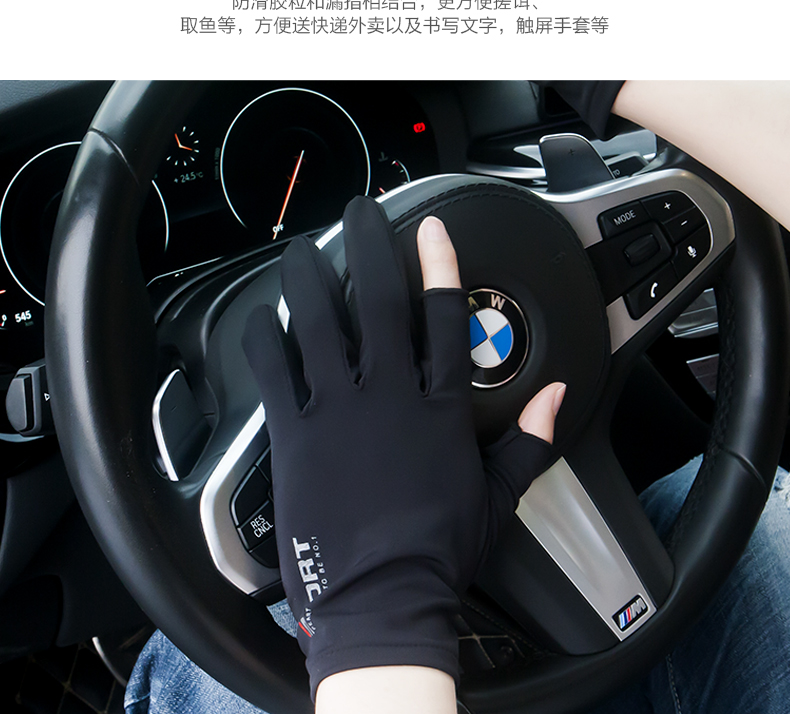 Velos Outdoor Cycling Gloves Men's Summer Half Finger Thin Sunscreen Ice Silk Driving Leak Two Finger Fishing Fitness Gloves Women Men's Black (Half Finger) One Size