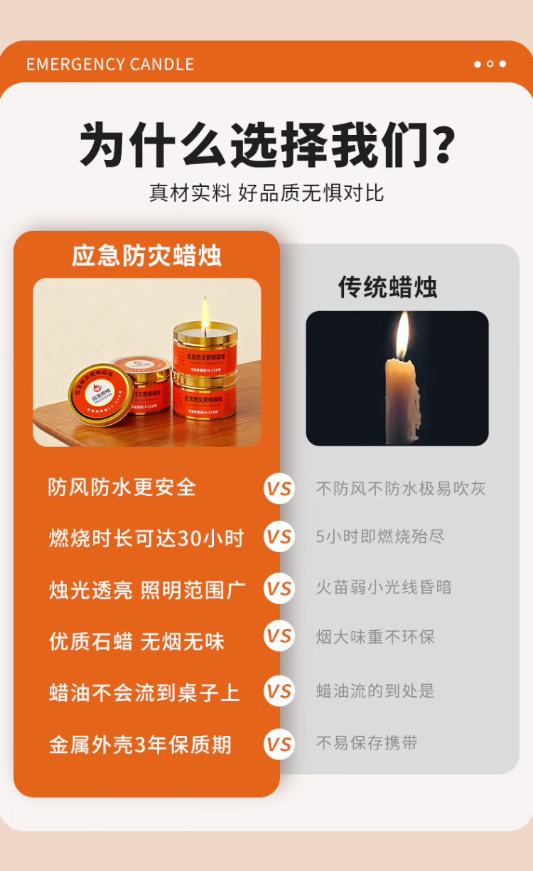 Lesanhao Candle Emergency Disaster Prevention Power Outage Lighting Candle Light Waterproof Windproof Smokeless Candle Warming Easy Storage Metal Iron Box 80g 2 Pack