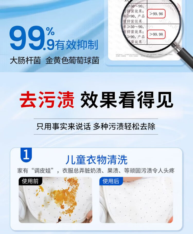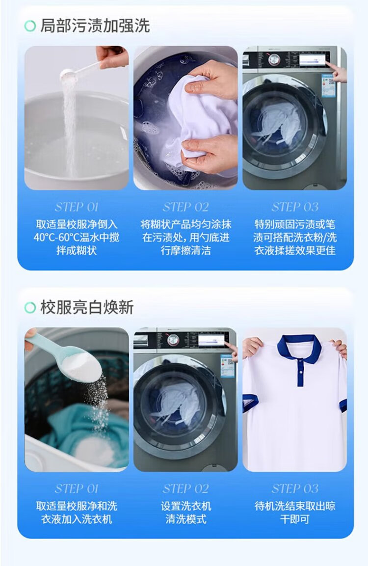 Yimei school uniform color bleaching powder explosive salt student clothes decontamination, yellowing and whitening cleaning agent to remove oil stains and wash school uniforms artifact