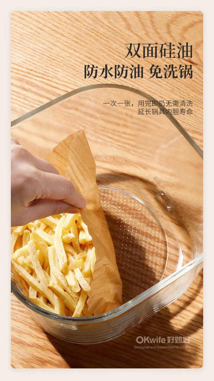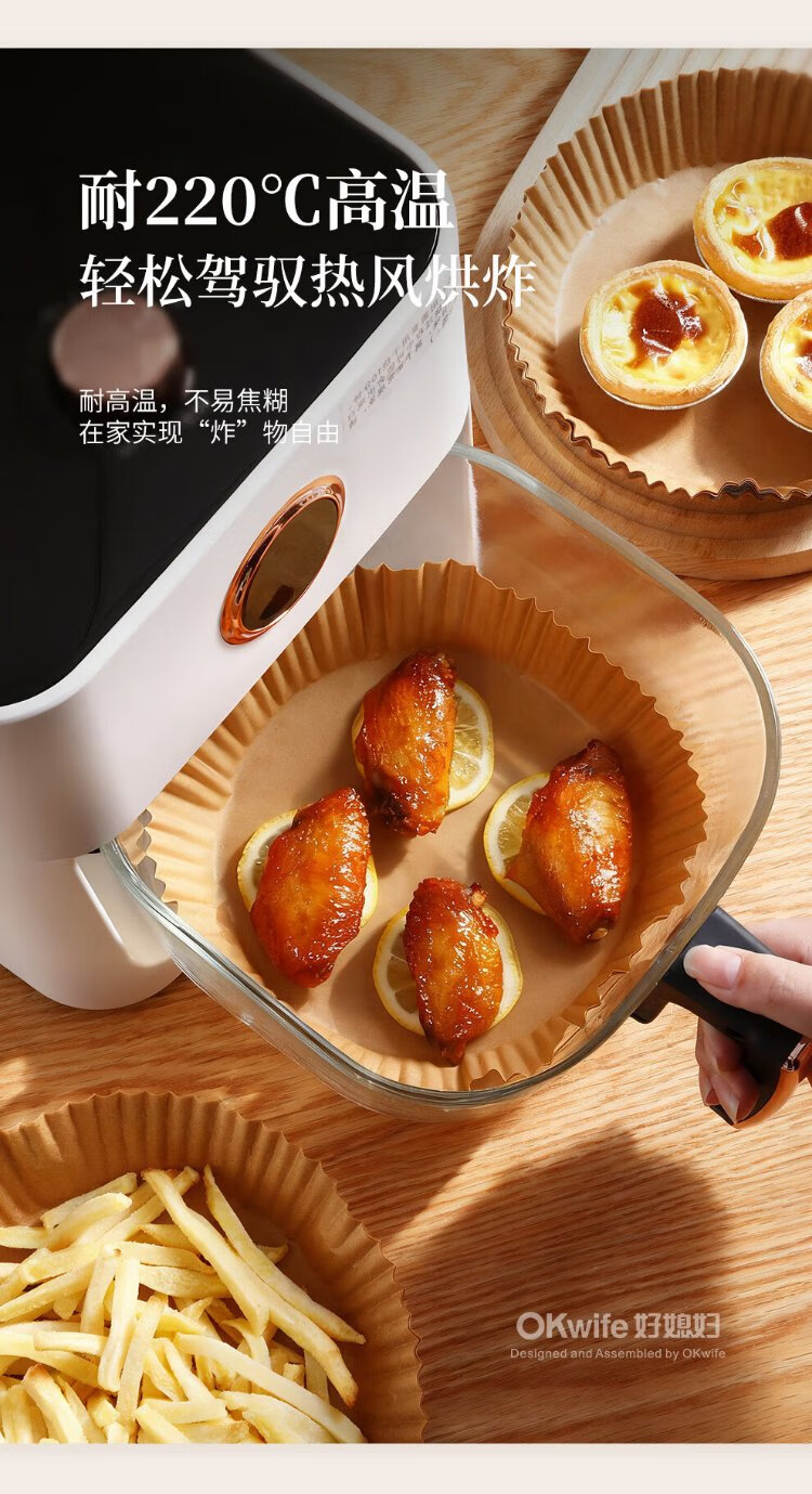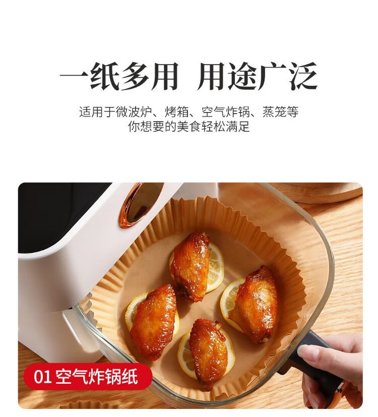 Good Wife Air Fryer Special Paper Square Oven Lining Paper Silicone Paper Suitable for Fryers Over 3L 50 Pack