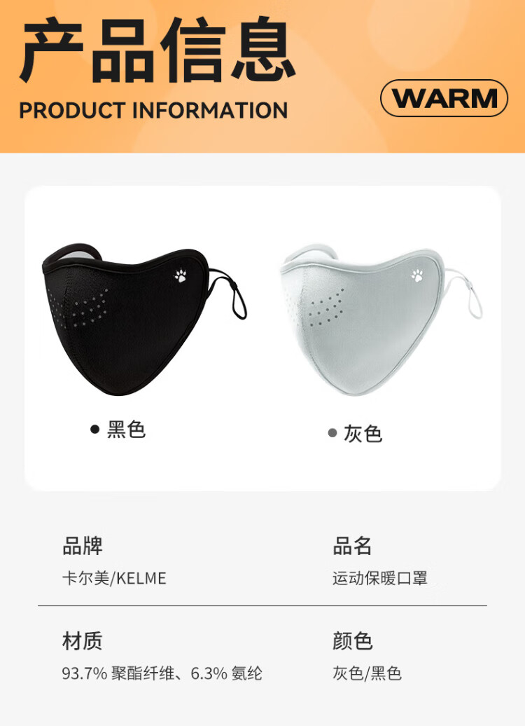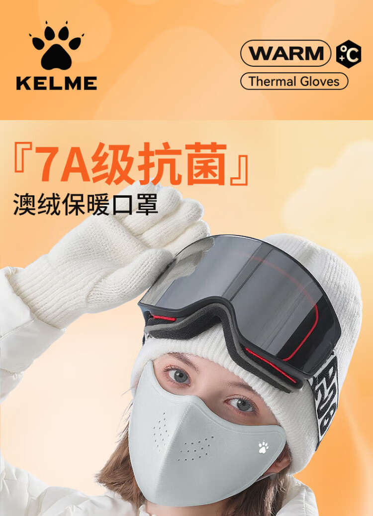 KELME Warm Mask Autumn and Winter Cycling Mask Men's and Women's Ski Cycling Windproof Plus Velvet Thickened Breathable Washable Mask