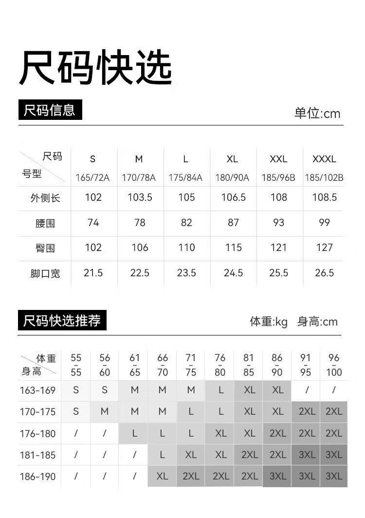 China (cm) 160-165/84-86 165-170 / 88-90 167-172 / 92-96 168-173 / 98-102 170-176 / 106-110