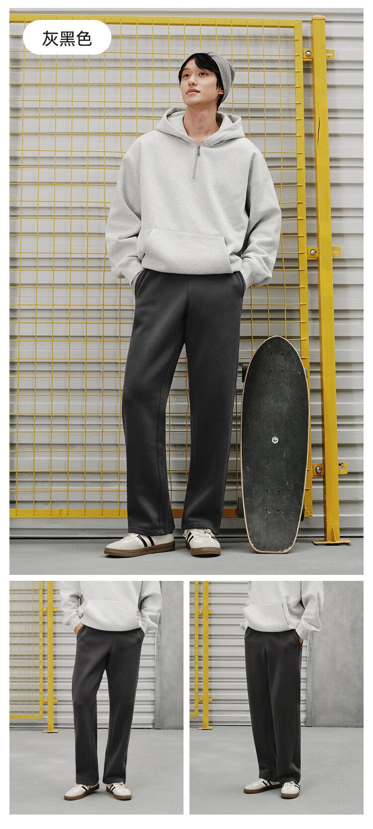 Made in Tokyo, super soft sports pants for autumn men's new velvet straight casual pants, simple and versatile for outdoor running, gray black XL
