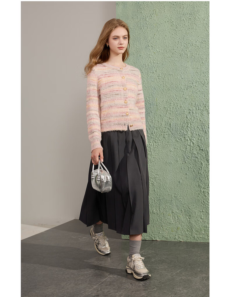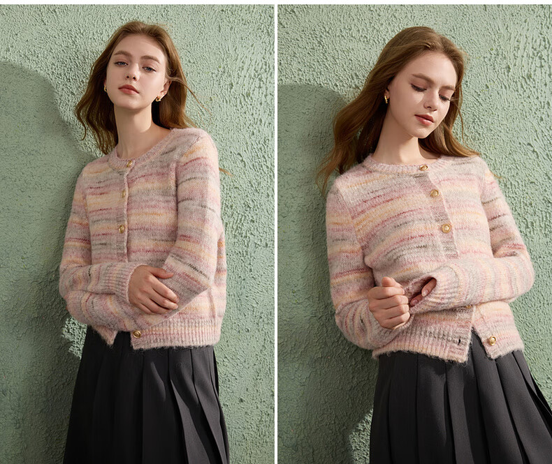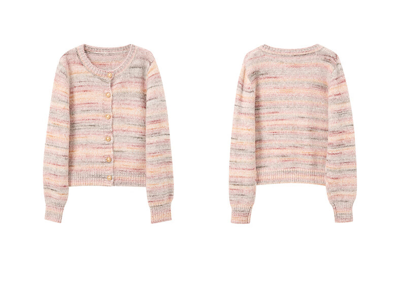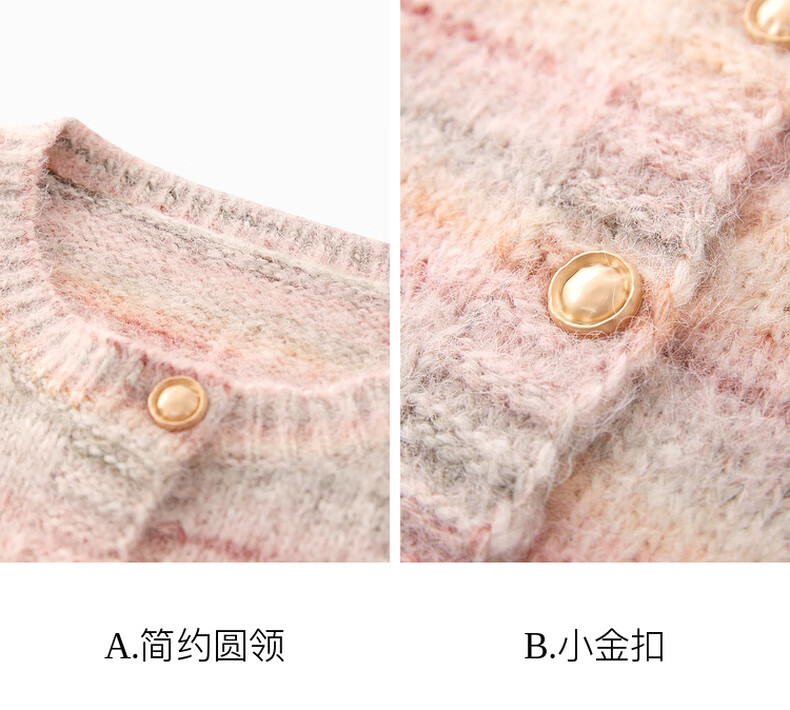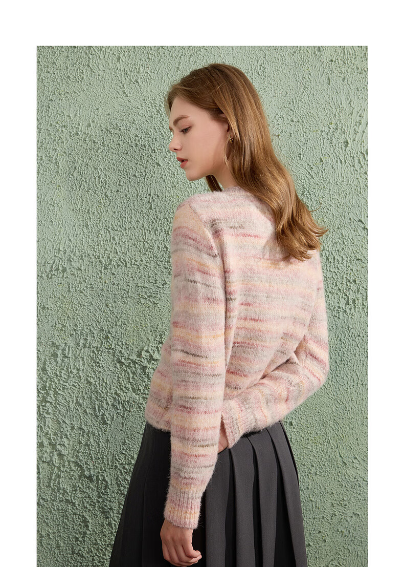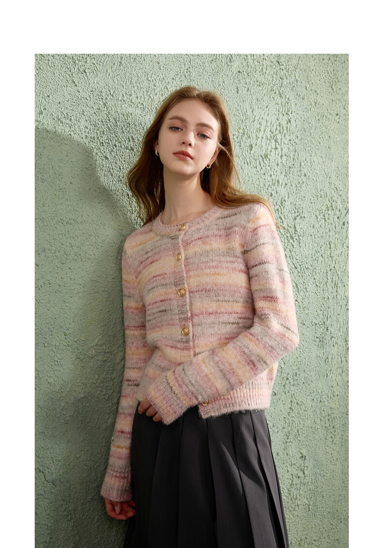 Sancai 2025 new winter marshmallow sweater space dyed sweater round neck cardigan sweet sweater loose for women