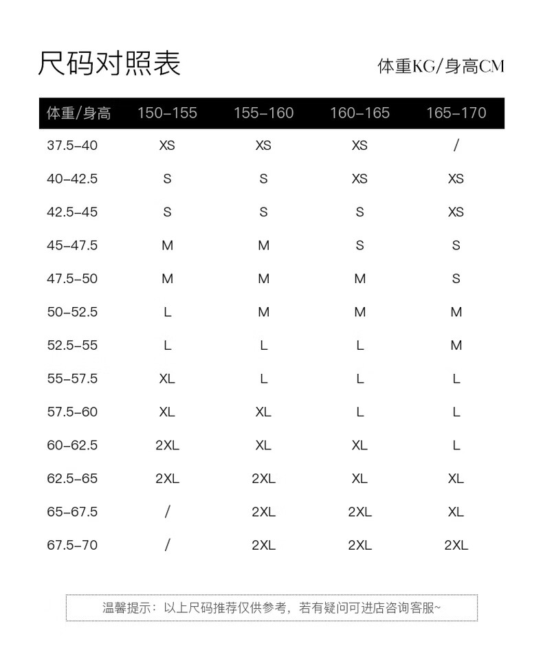 China (cm) 160-165/84-86 165-170 / 88-90 167-172 / 92-96 168-173 / 98-102 170-176 / 106-110