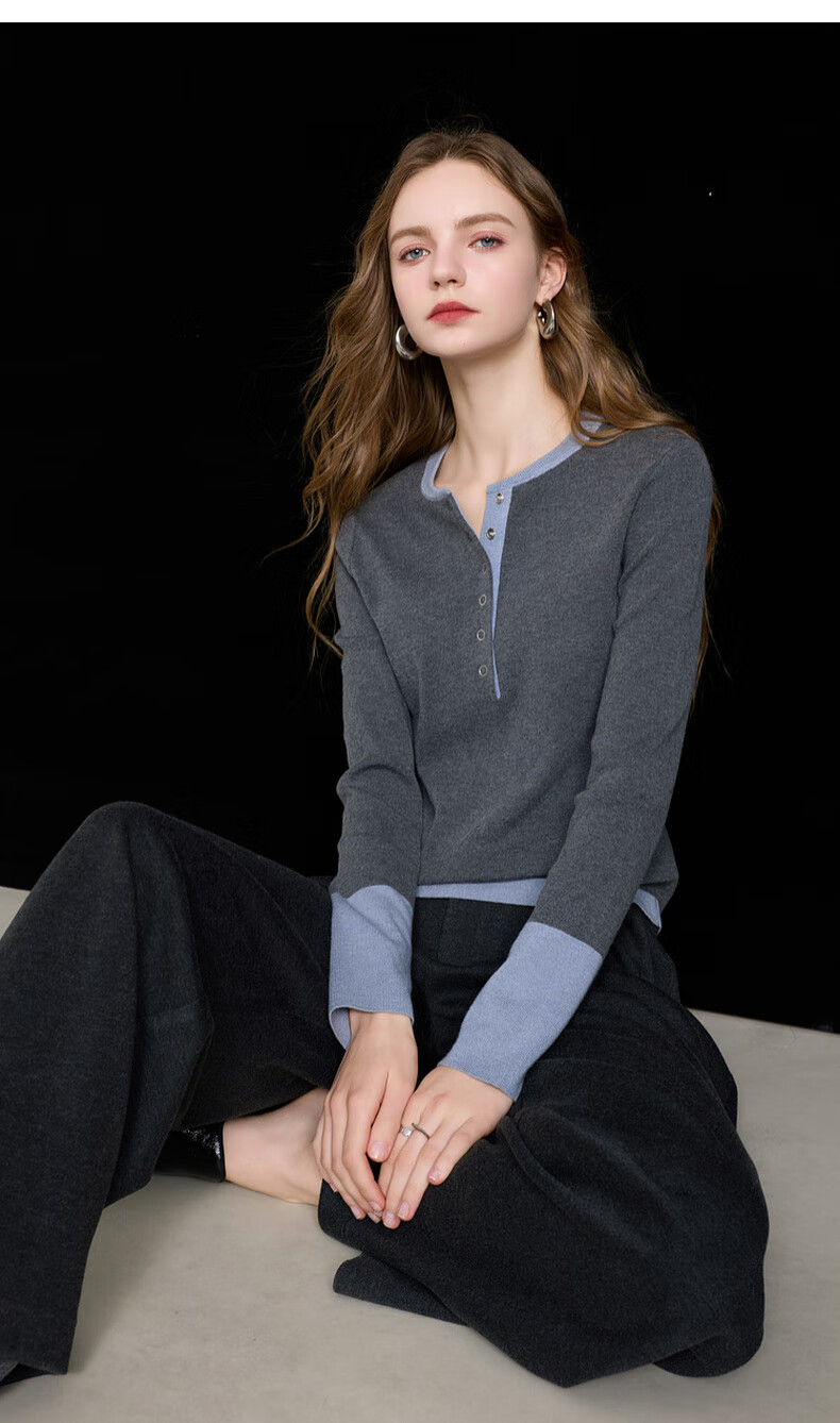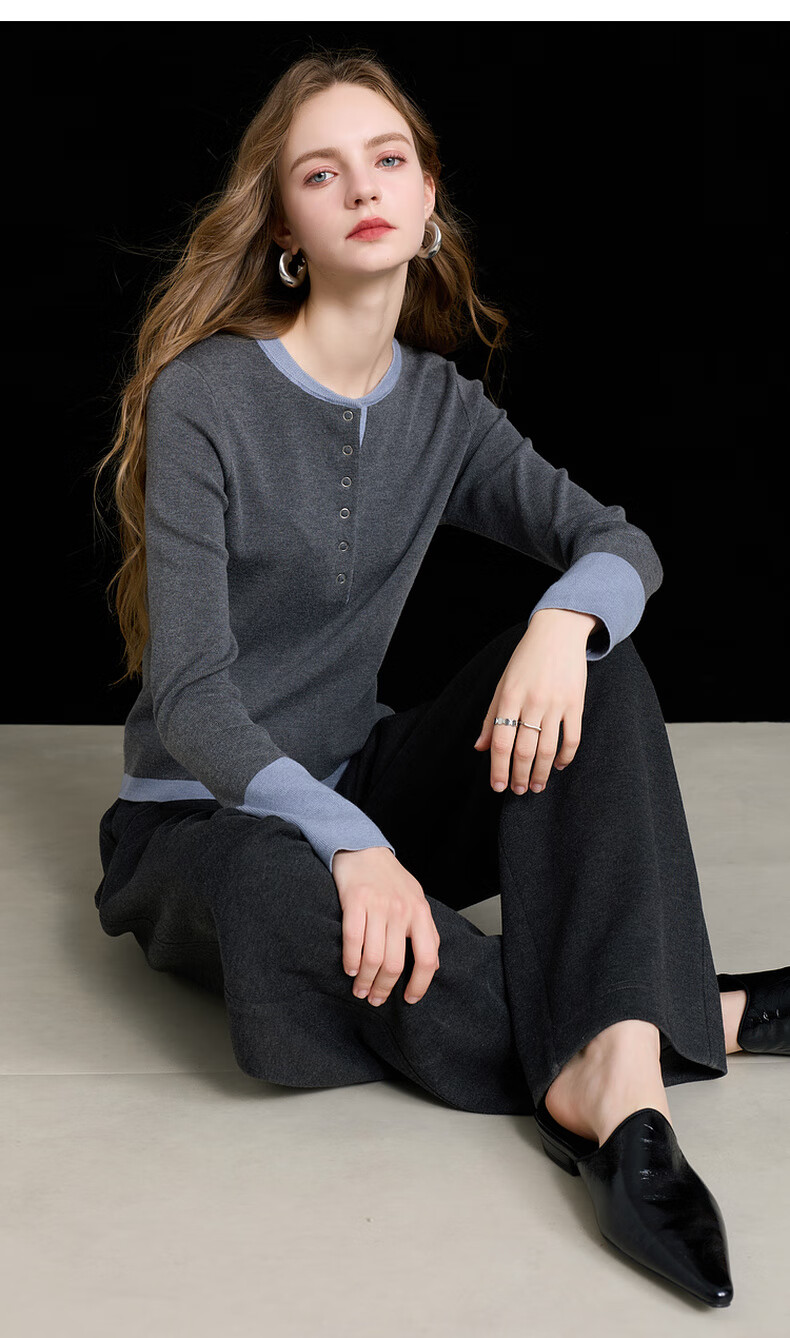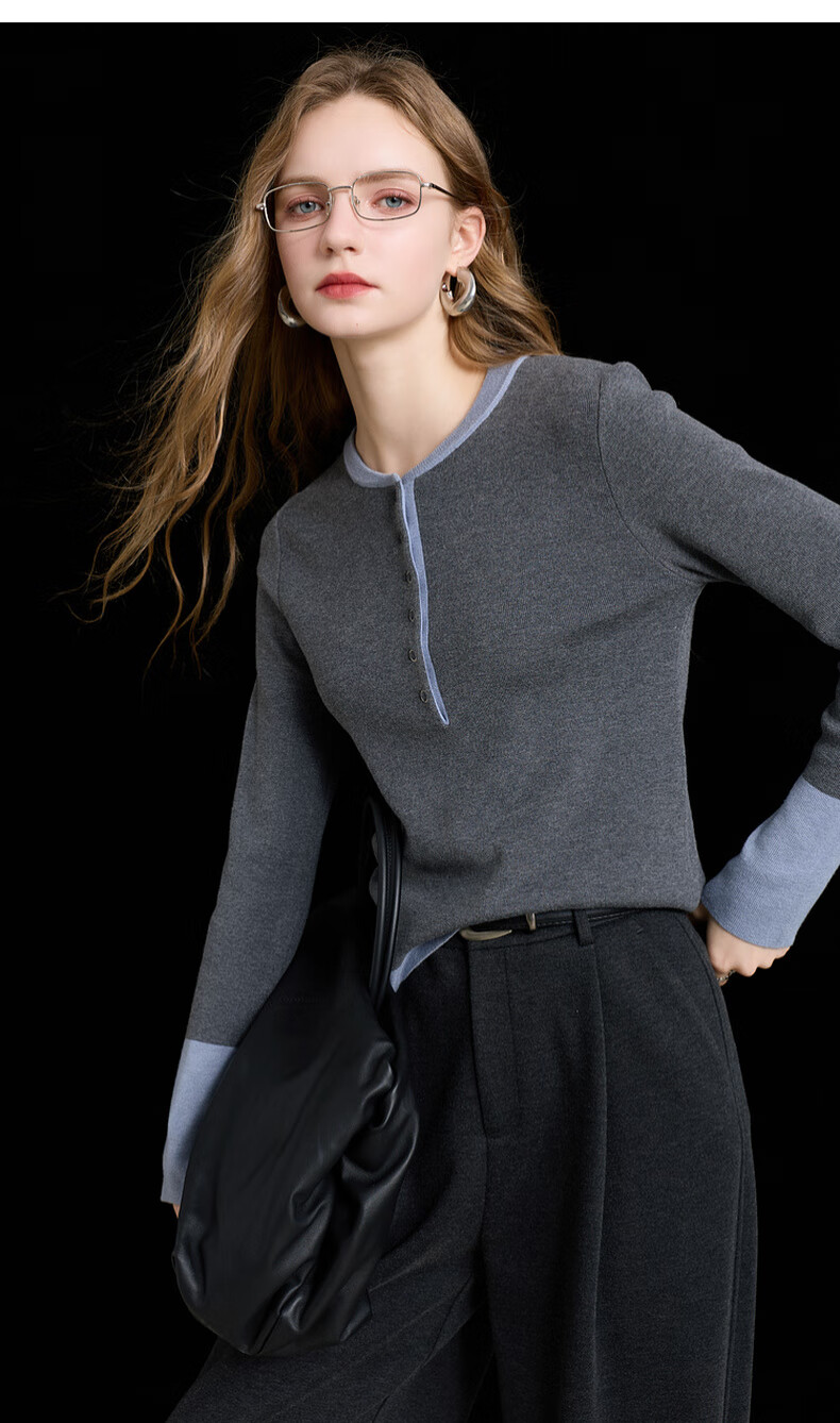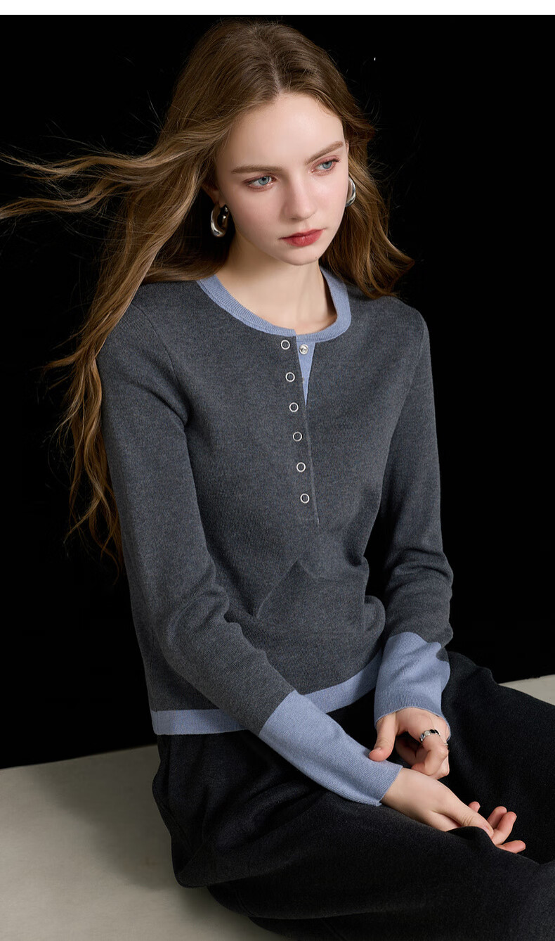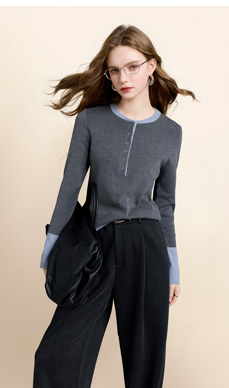 Sancai 2025 new winter round neck sweater long-sleeved simple pullover top slim and versatile M