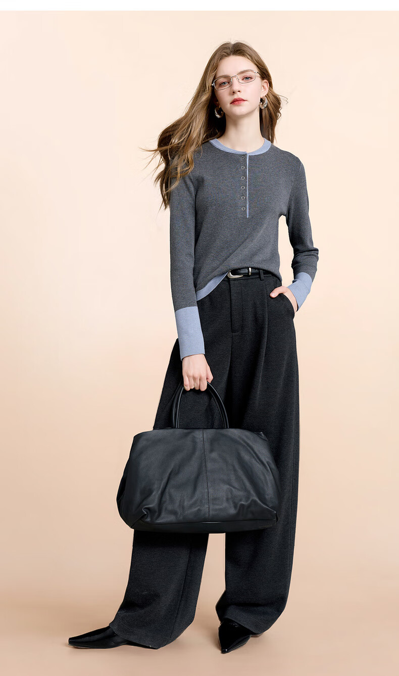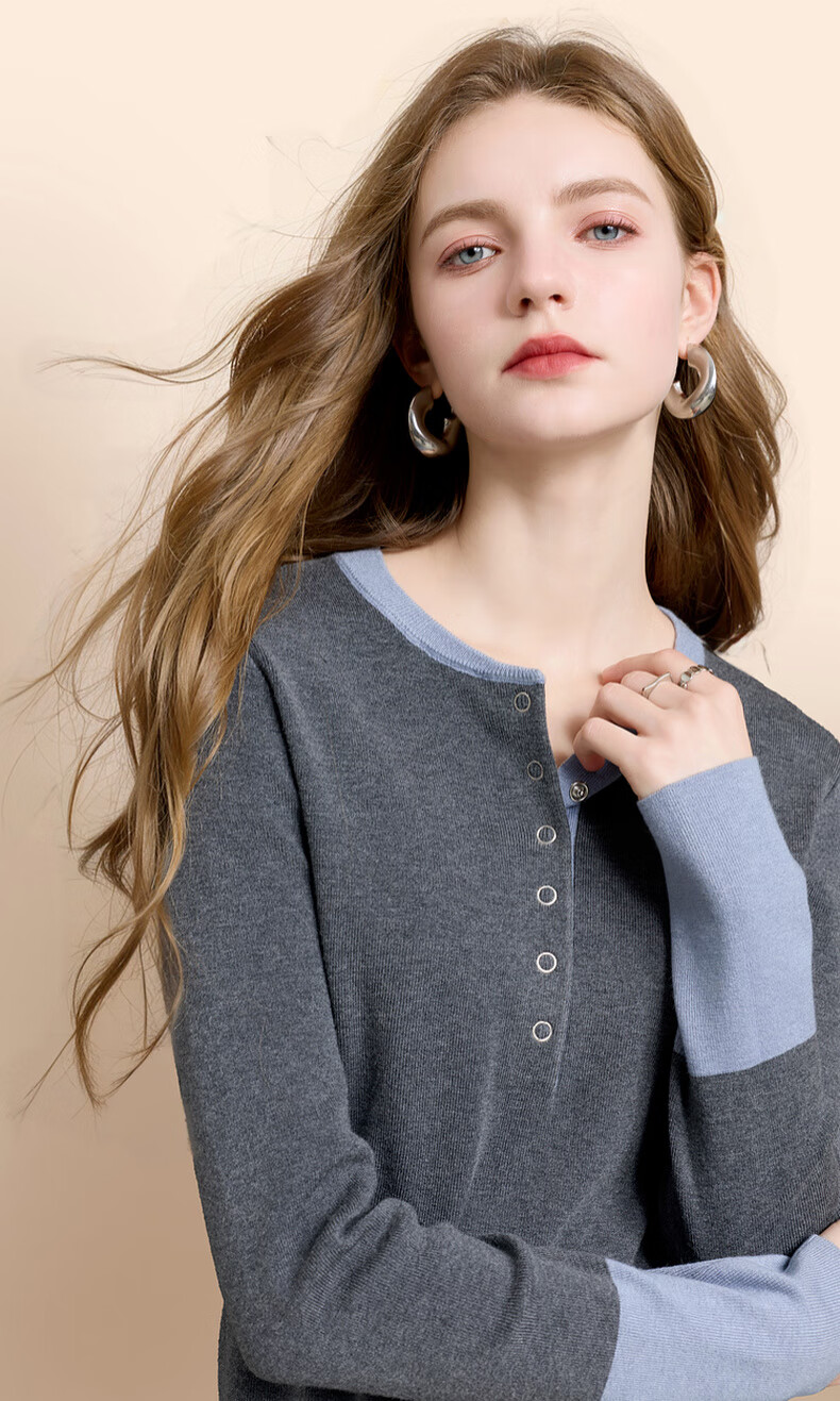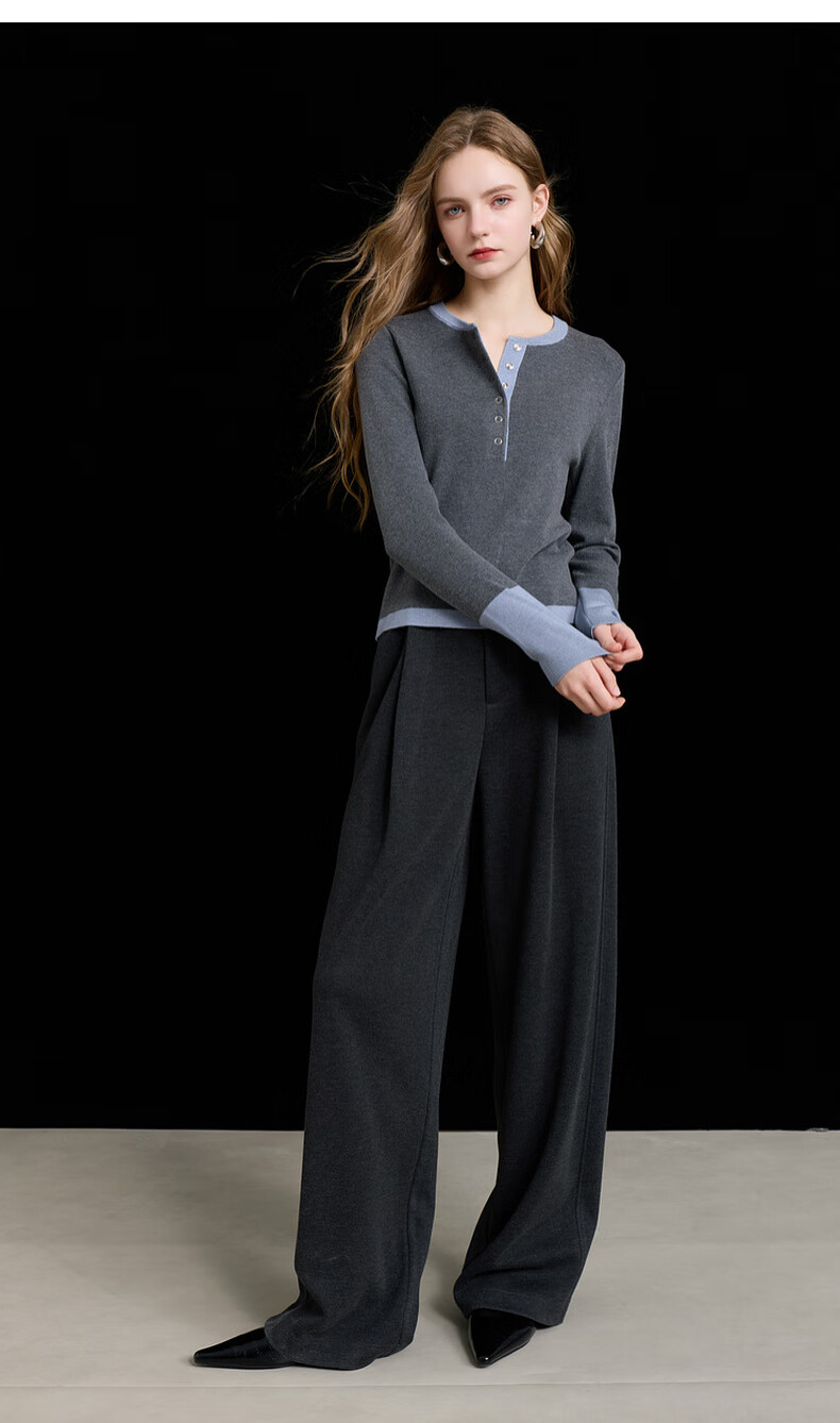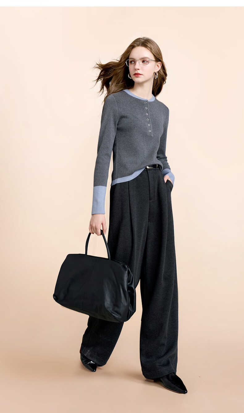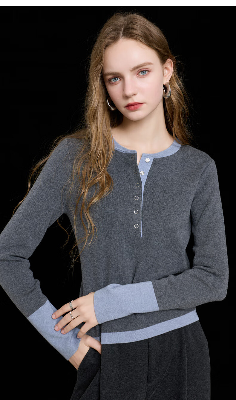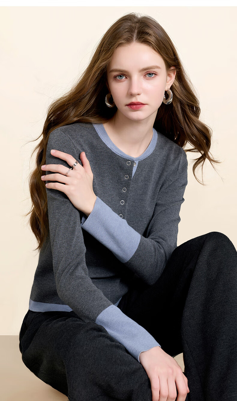 Sancai 2025 new winter round neck sweater long-sleeved simple pullover top slim and versatile M