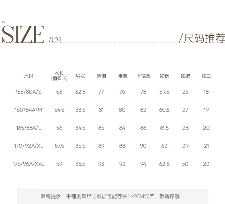 China (cm) 160-165/84-86 165-170 / 88-90 167-172 / 92-96 168-173 / 98-102 170-176 / 106-110