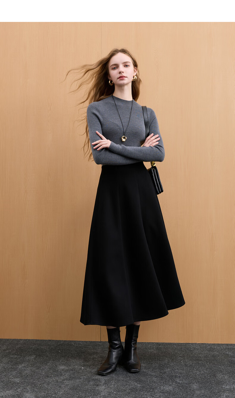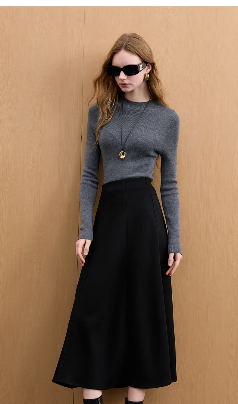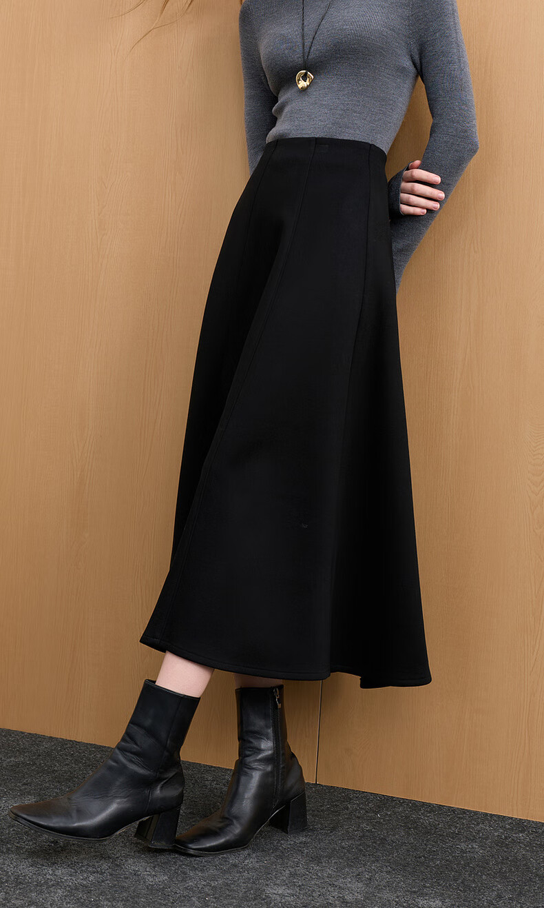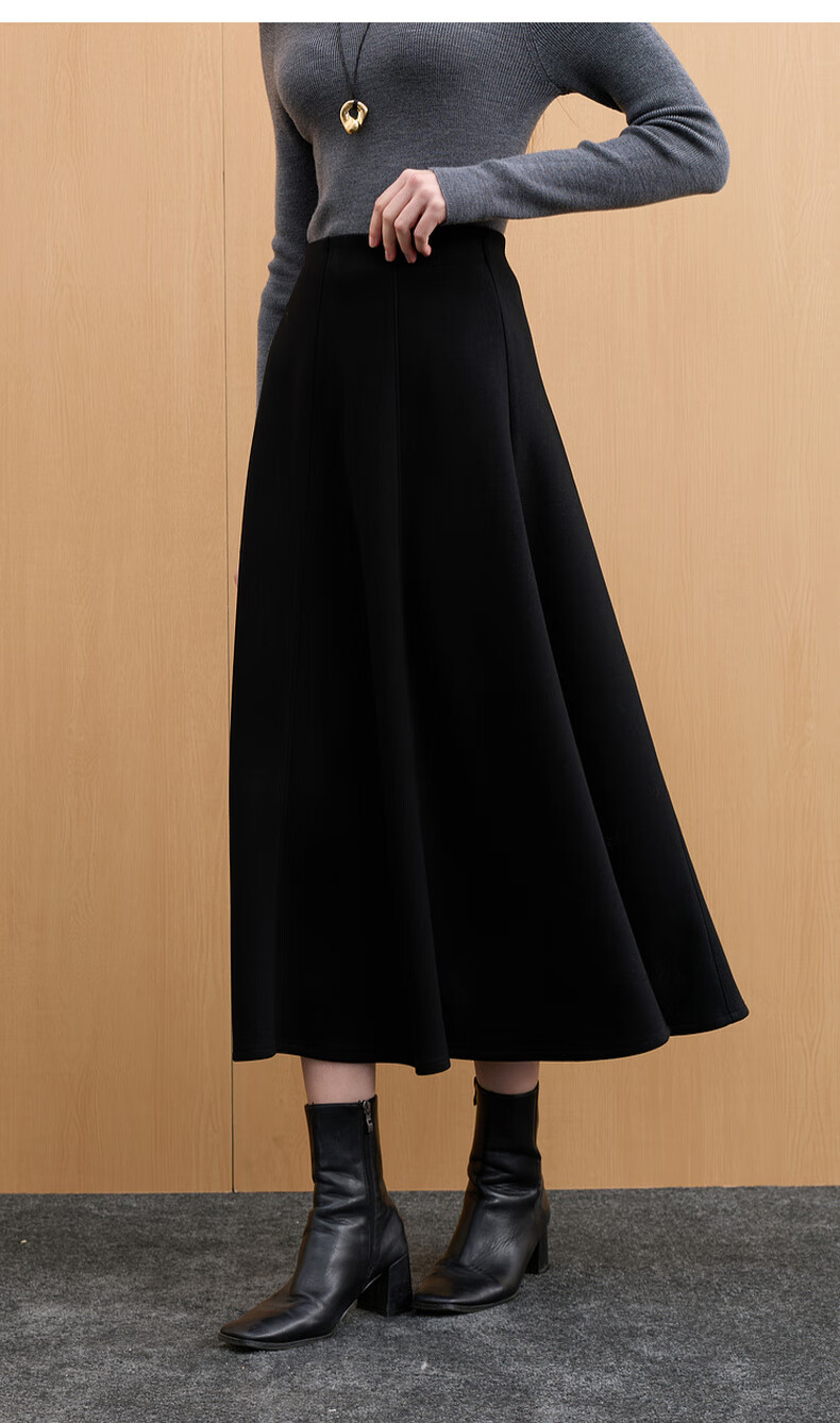 Sancai 2025 winter new high-waisted elastic skirt A-line skirt temperament commuting long skirt high-end M