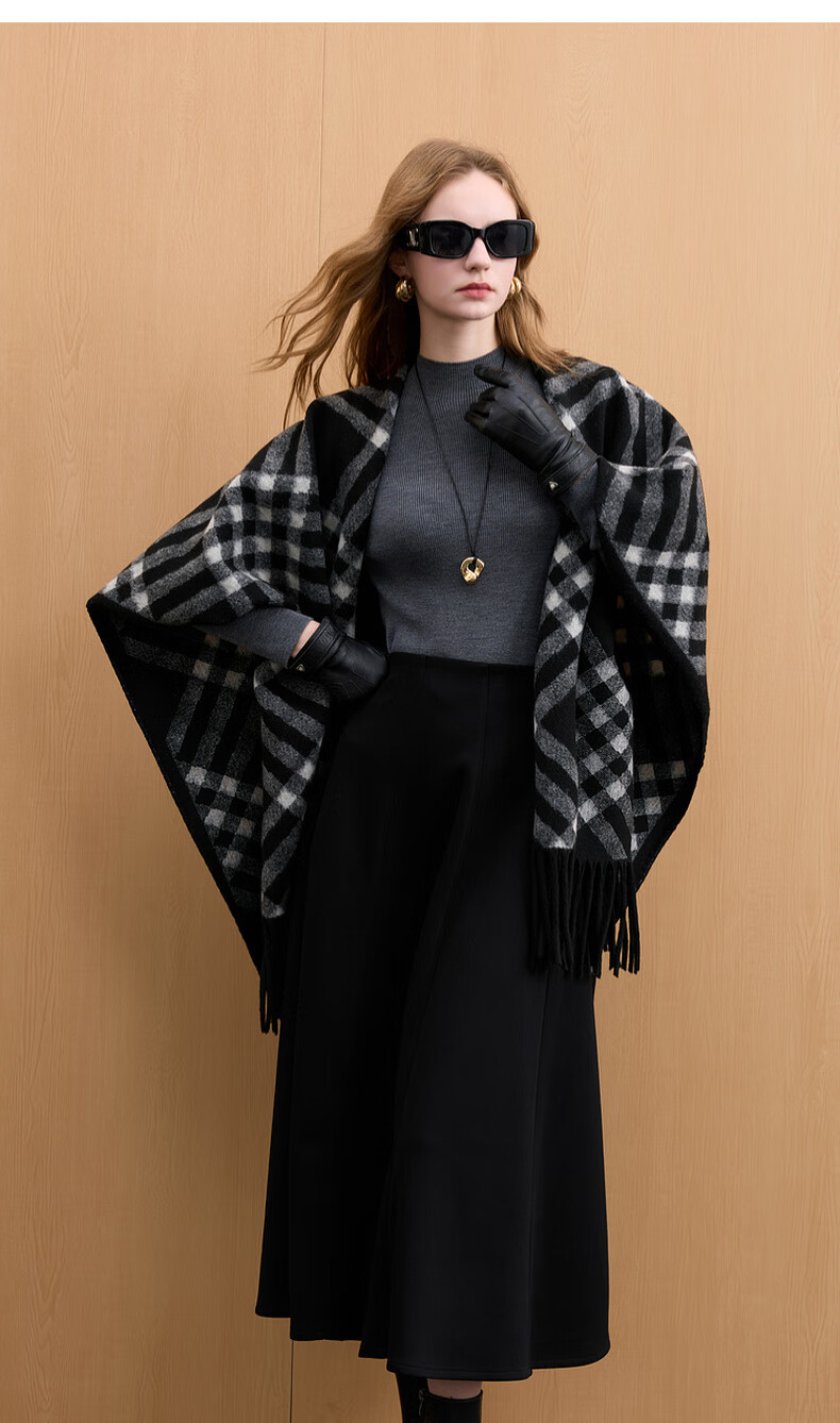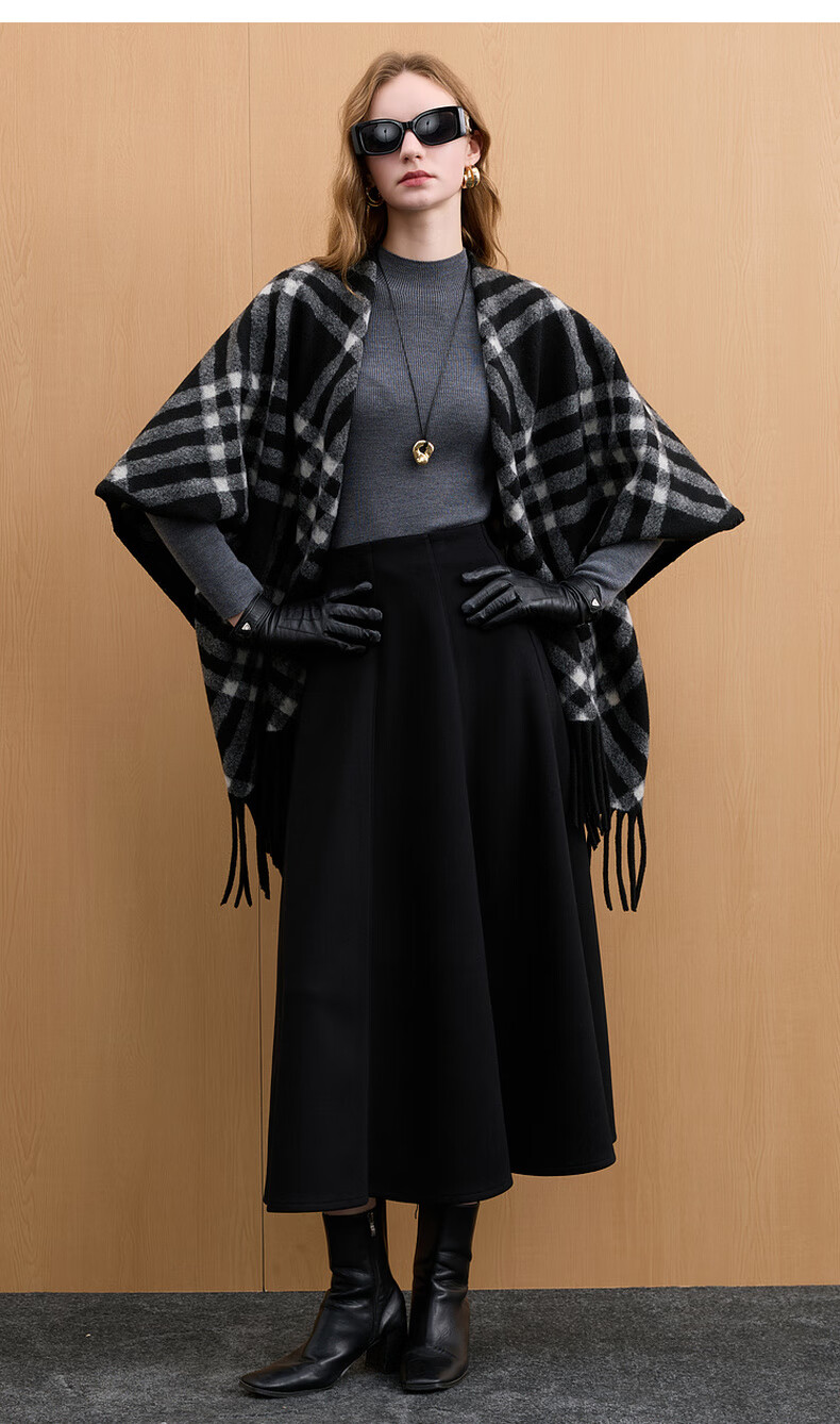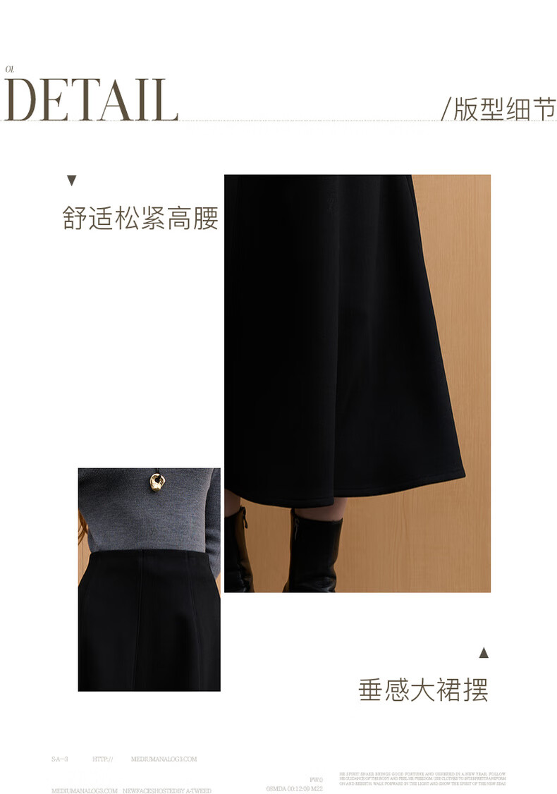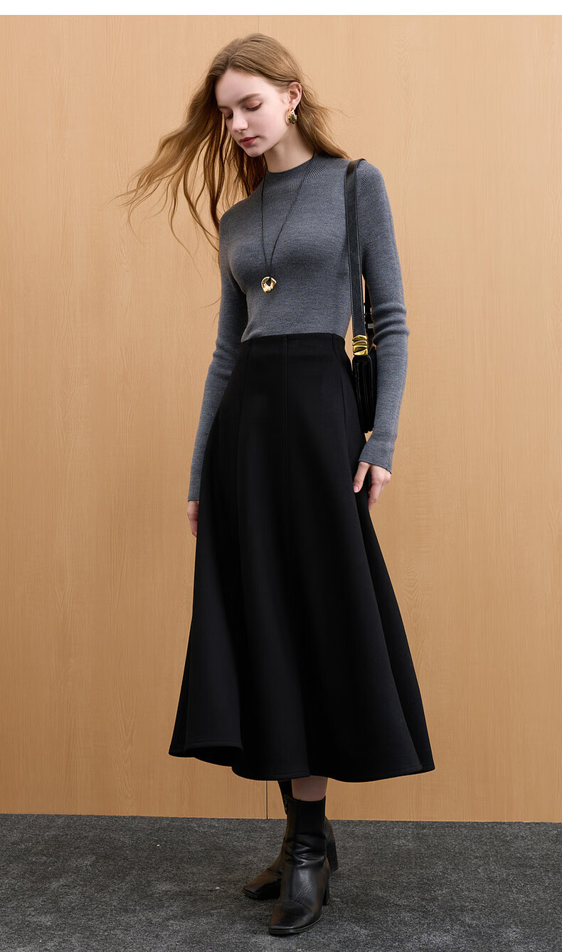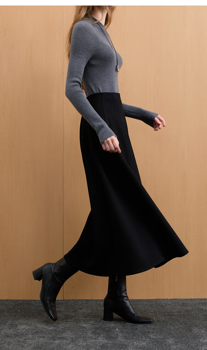 Sancai 2025 winter new high-waisted elastic skirt A-line skirt temperament commuting long skirt high-end M