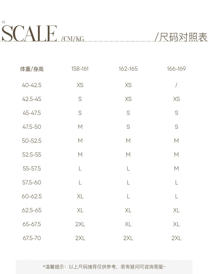 China (cm) 160-165/84-86 165-170 / 88-90 167-172 / 92-96 168-173 / 98-102 170-176 / 106-110