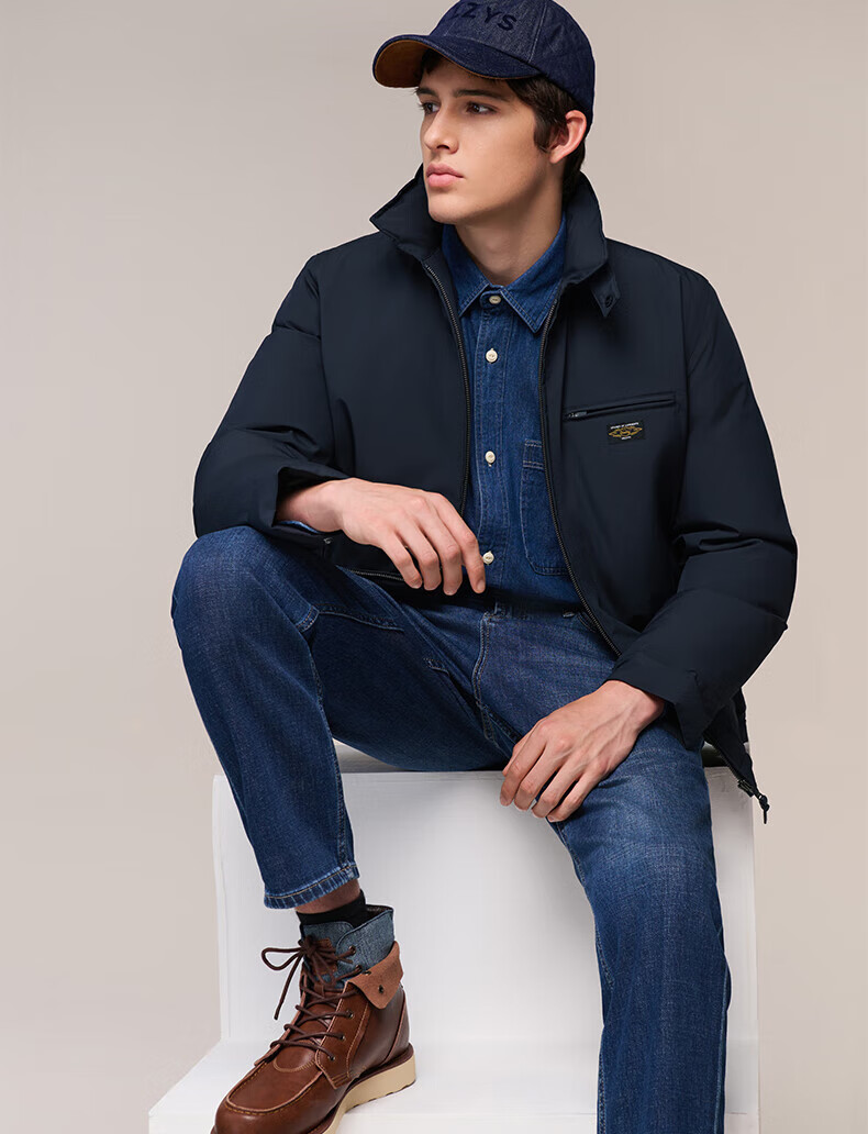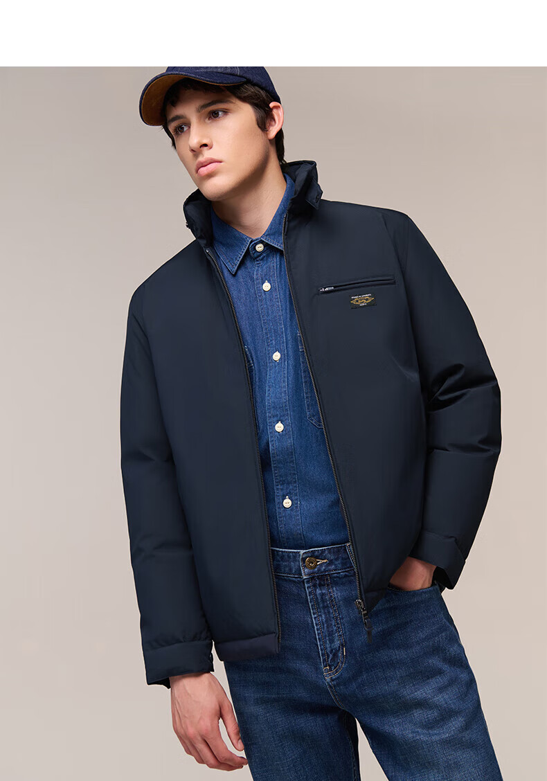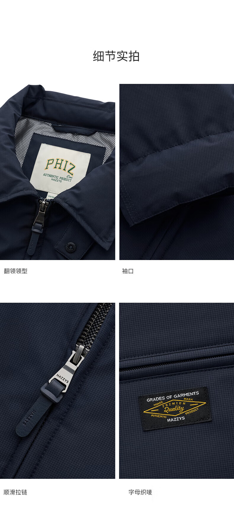 HAZZYS Men's Winter Clothes Lapel Executive Jacket Thick PHIZ Series Detroit Down Jacket Men
