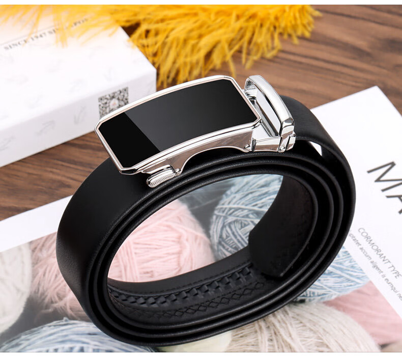 Watson Sheep Headless Belt Men's Cow Belt Strip Automatic Buckle Business Casual Pants Belt Fashion Black 120cm