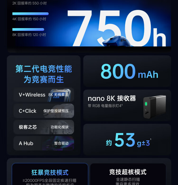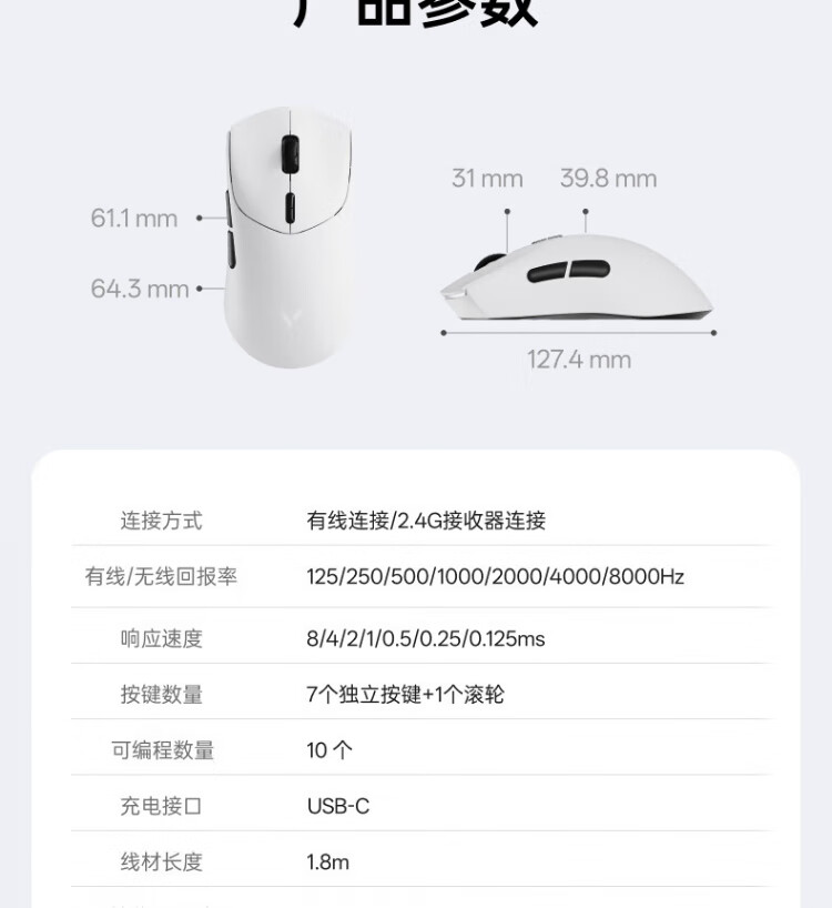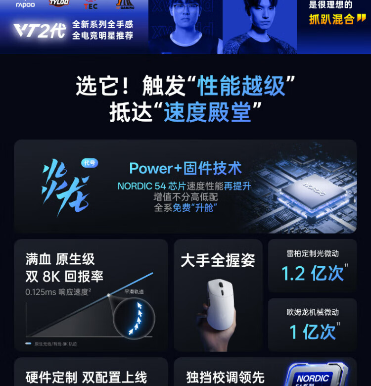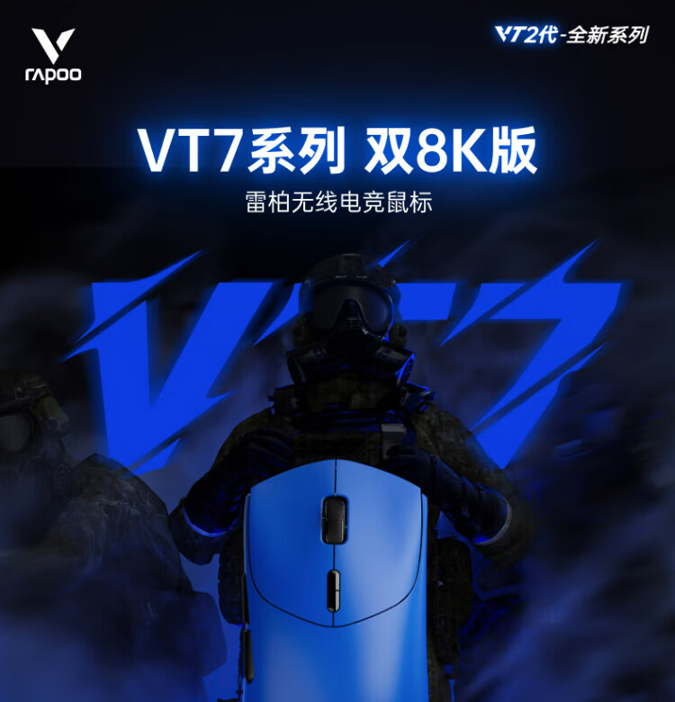 Rapoo VT7 second generation dual 8K version wireless/wired dual-mode gaming mouse for medium and large hands, lightweight original phase 3398 delta action fps chicken gaming mouse, forged crimson
