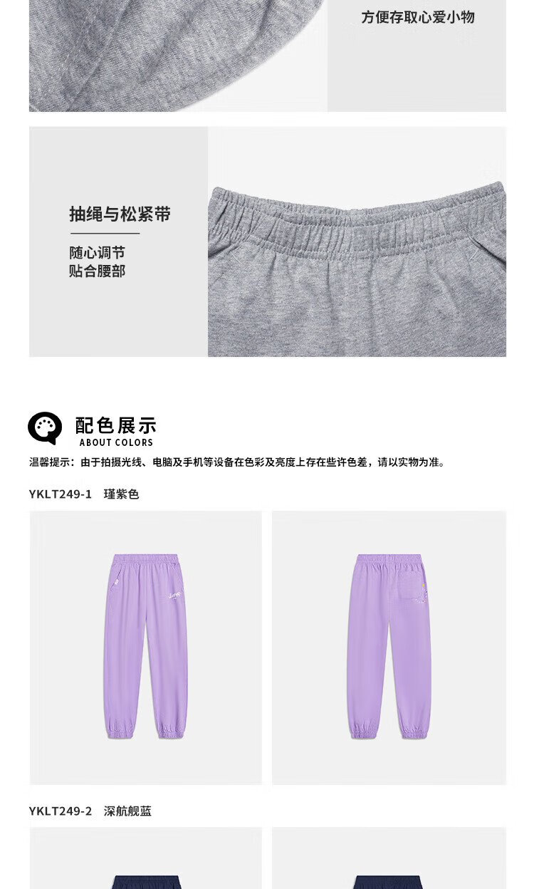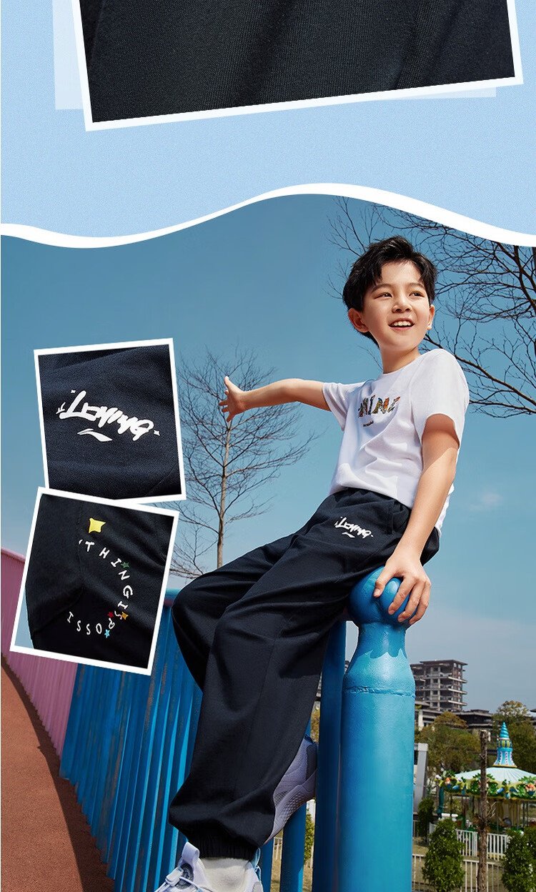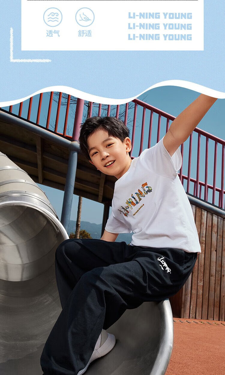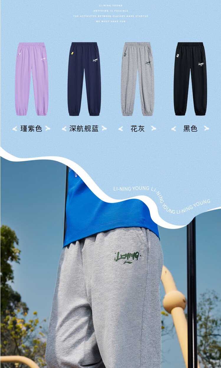 Li Ning (LI-NING) children's clothing, children's sports pants for boys and girls, plus velvet to keep warm and skin-friendly, cotton-feeling sweatpants 170YKLV367-2