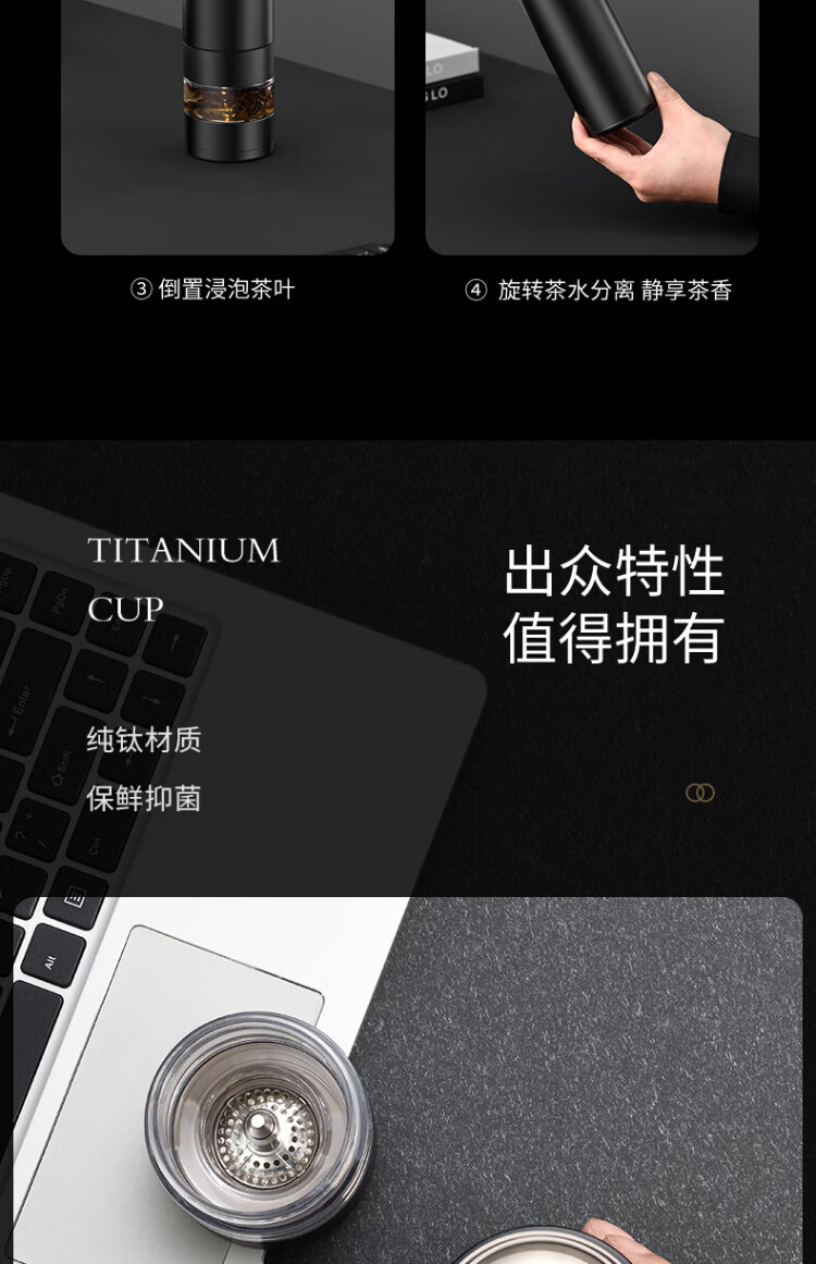 Eno2025 new titanium cup pure titanium insulated cup for men and women tea and water separation tea cup high-end water cup gift customization