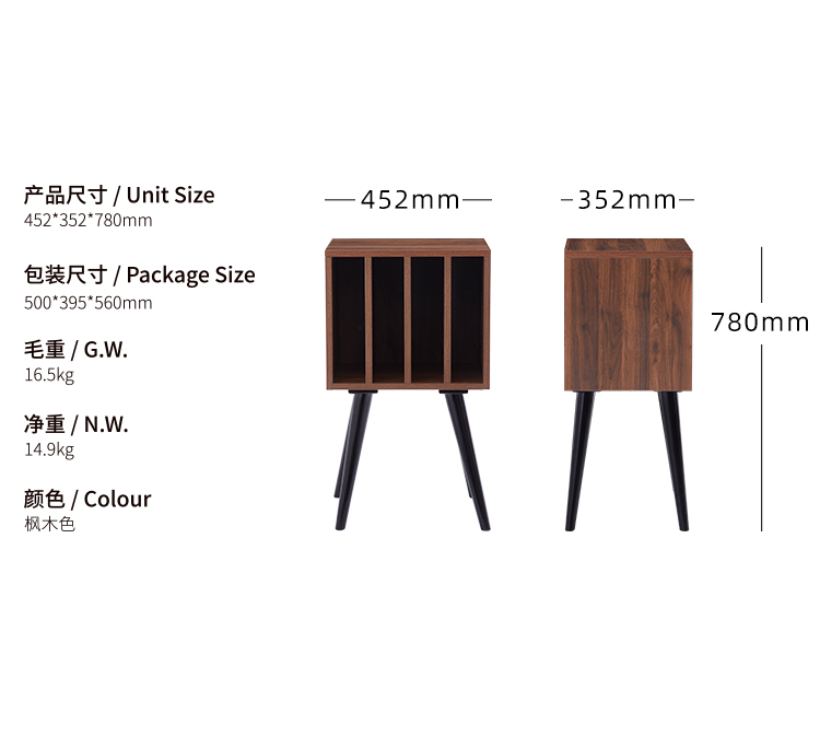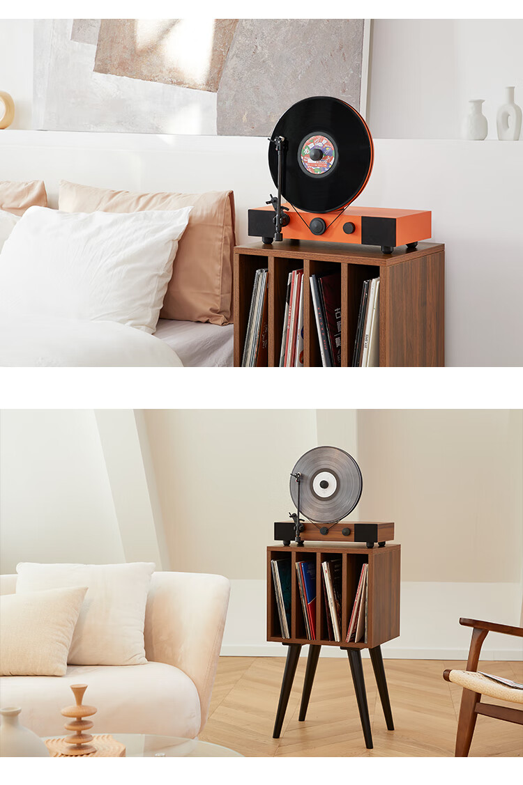 Fennessy Vertical LP Vinyl Rack Vinyl Cabinet Record Player Gramophone Base Storage Rack Bluetooth Audio Bookcase Small Cabinet Side Cabinet Storage Cabinet Walnut Color