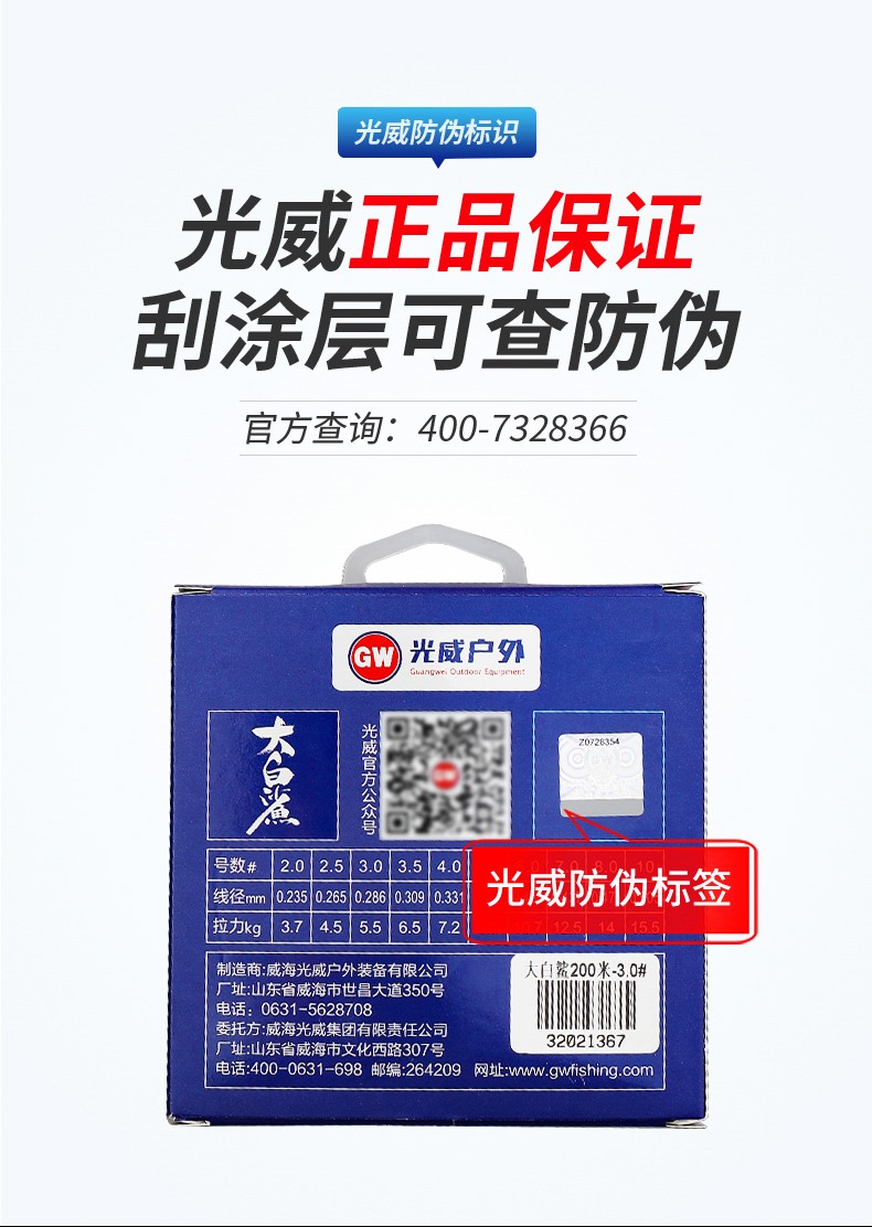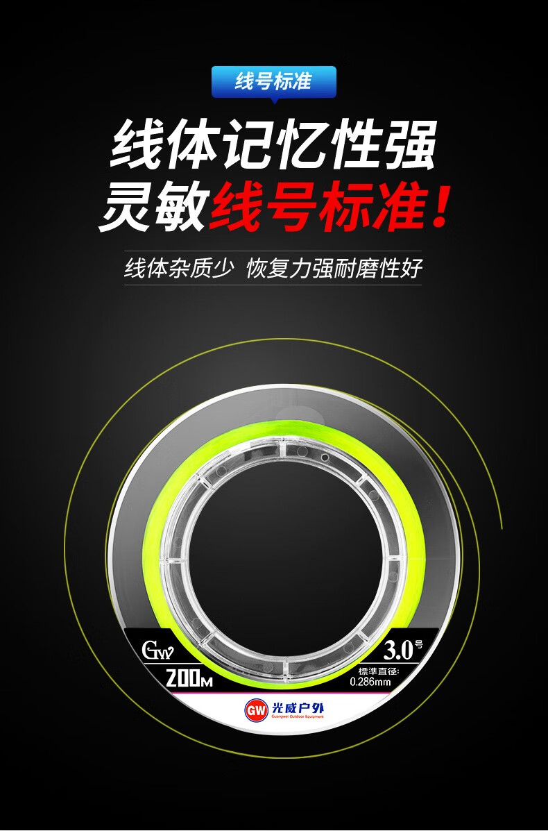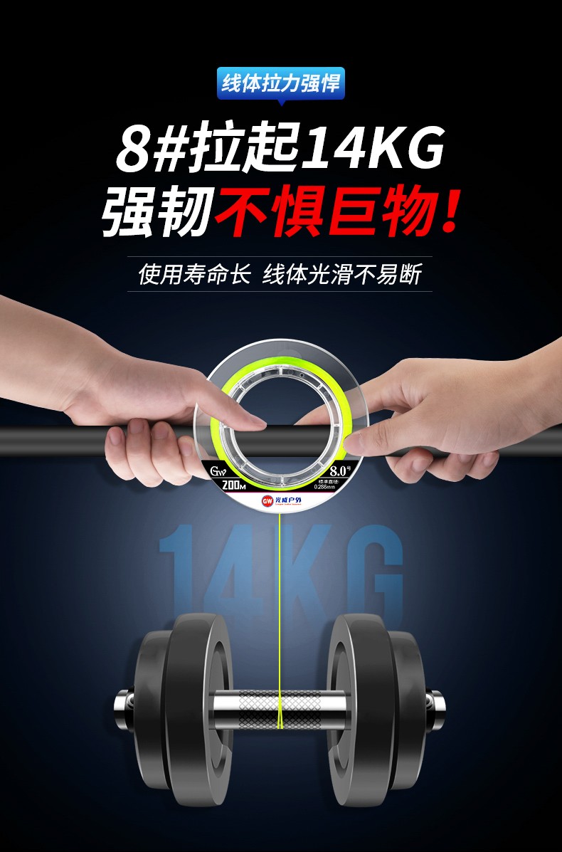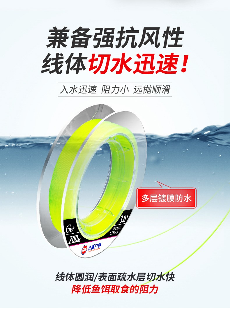 Guangwei (GW) Great White Shark Line Super Tension Long-range Fishing Line Main Line Taiwan Fishing and Sea Fishing Nylon Line Fishing Gear Supplies Great White Shark Long-range Fishing Line 200 Meters No. 2.0