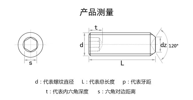 Fengji concave end tightening 304 stainless steel hexagonal screw headless machine meter top screw M2M3M4M5M6M8M10M12 304-M2.5*3-50 pcs