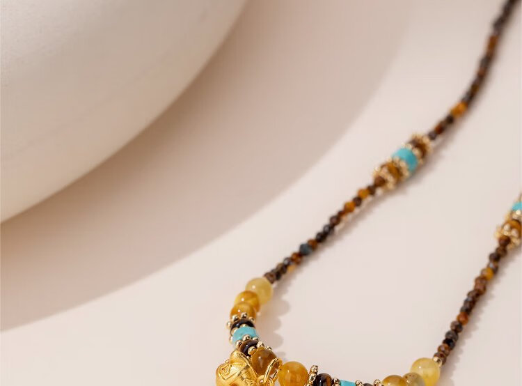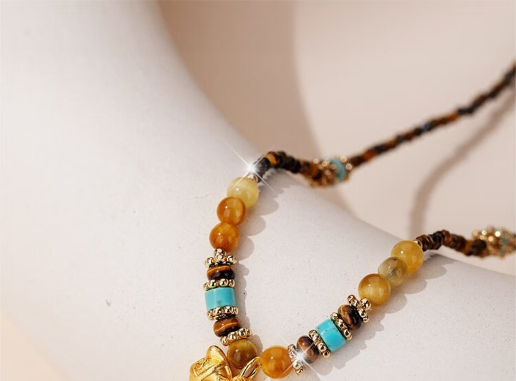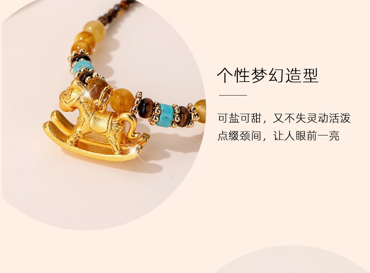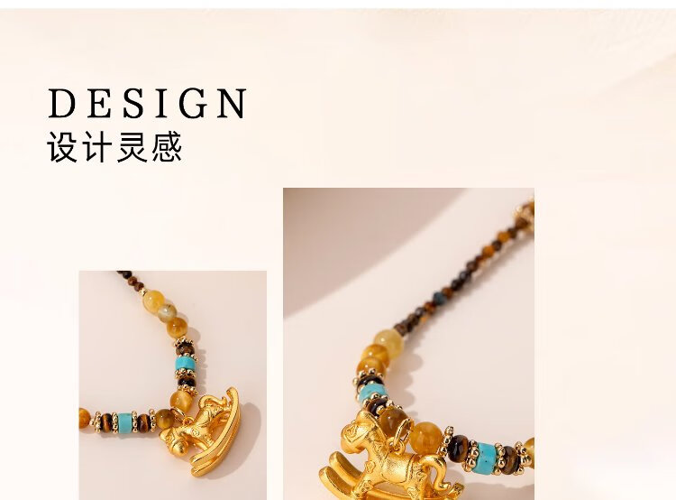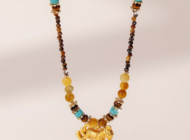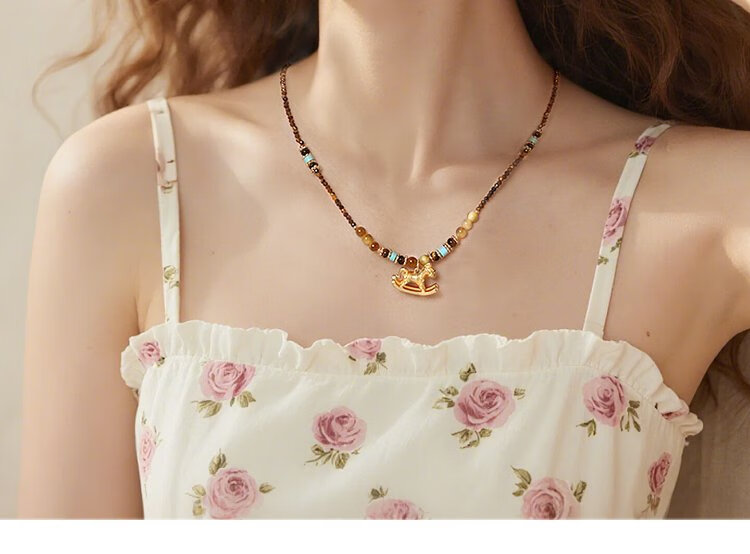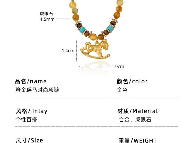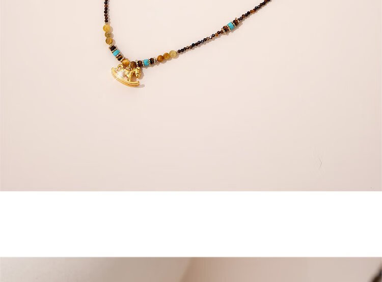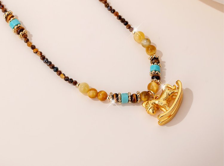 Qlady rocking horse necklace women's 2025 new high-end light luxury niche tiger eye stone pendant accessories clavicle chain birthday gift