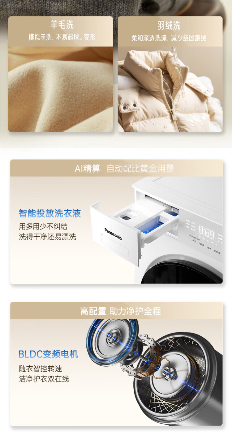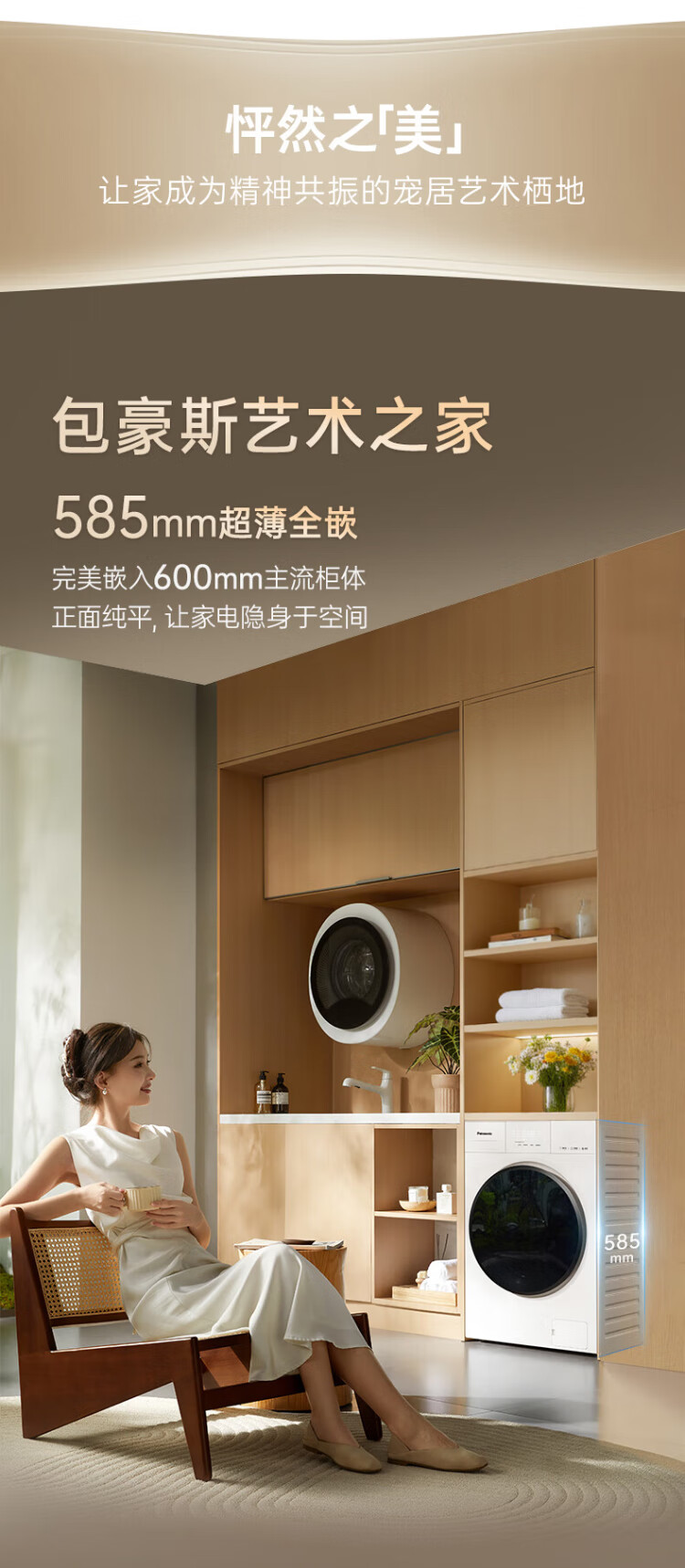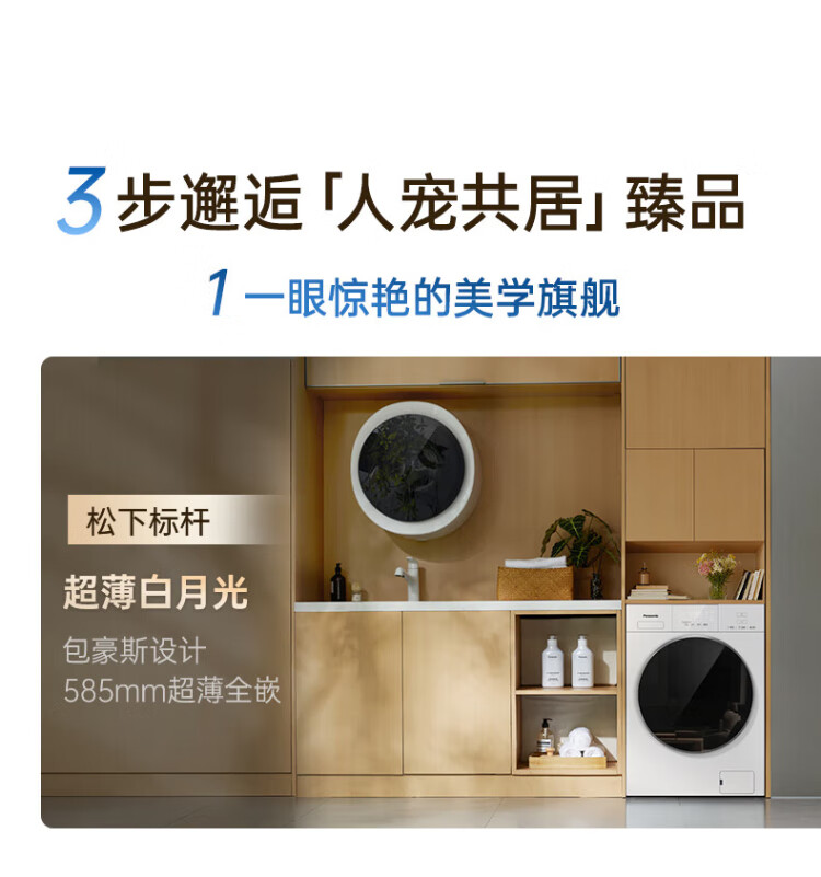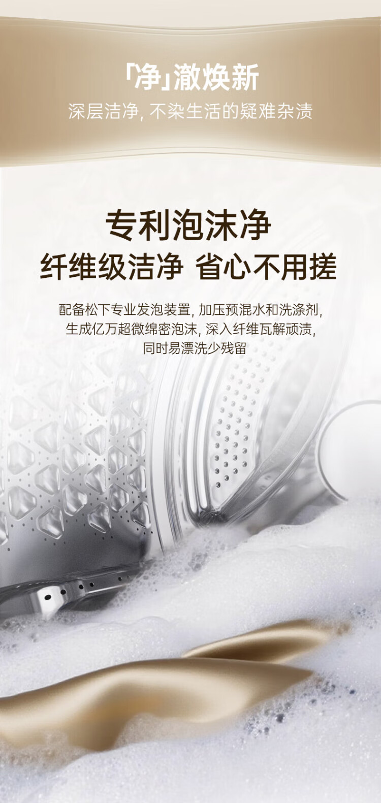 Panasonic White Moonlight 5.0 drum washing machine 10KG large capacity ultra-thin fully embedded professional hair removal and washing state subsidy XQG100-81F1