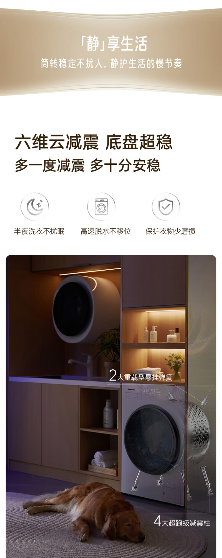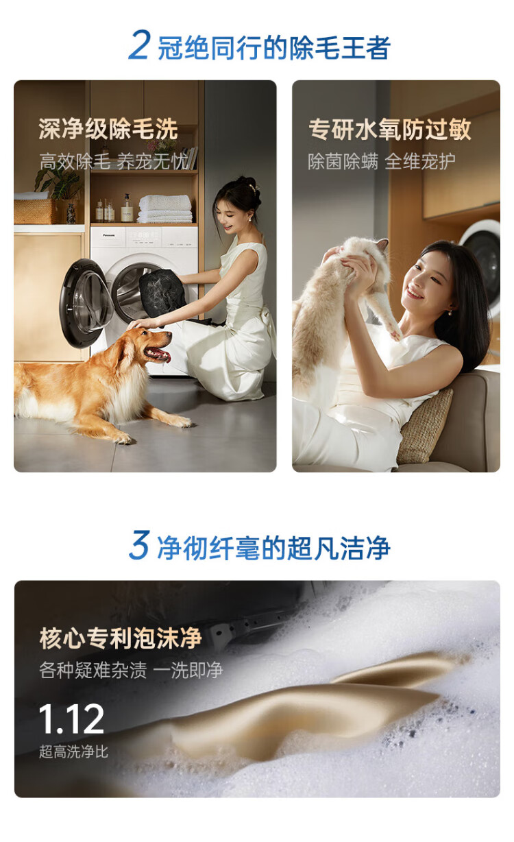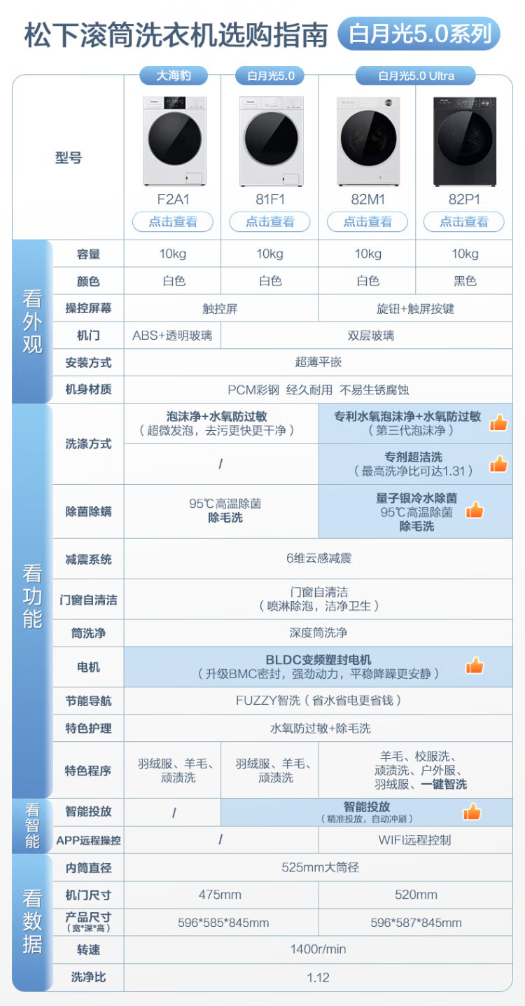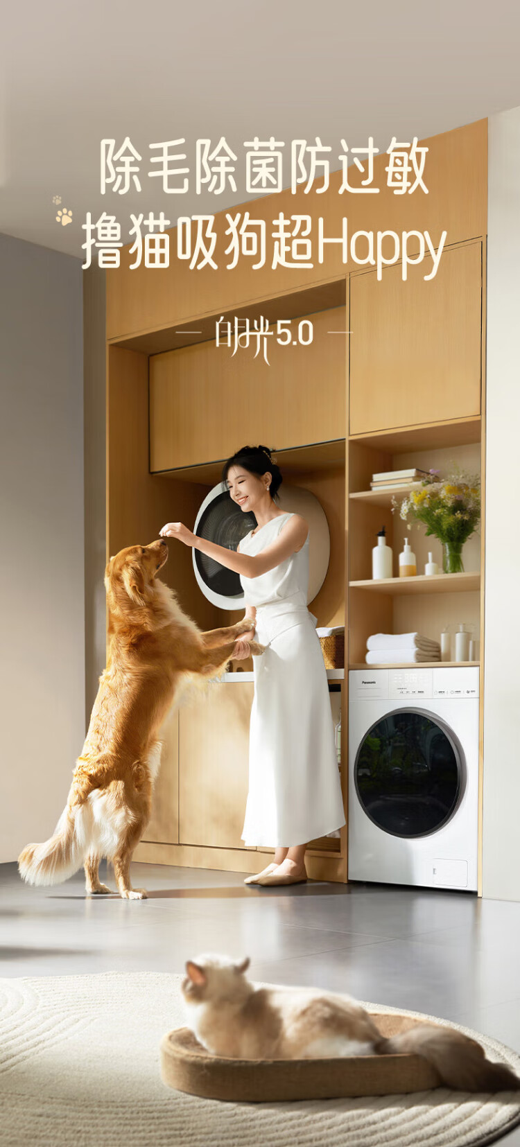Panasonic White Moonlight 5.0 drum washing machine 10KG large capacity ultra-thin fully embedded professional hair removal and washing state subsidy XQG100-81F1