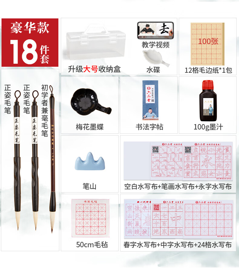 Liupintang brush water writing brush calligraphy water writing cloth set for beginners entry-level calligraphy special primary school calligraphy adult soft pen copybook water writing practice washed cloth fifth treasure of the study room
