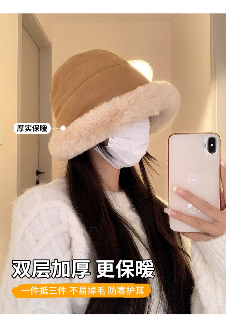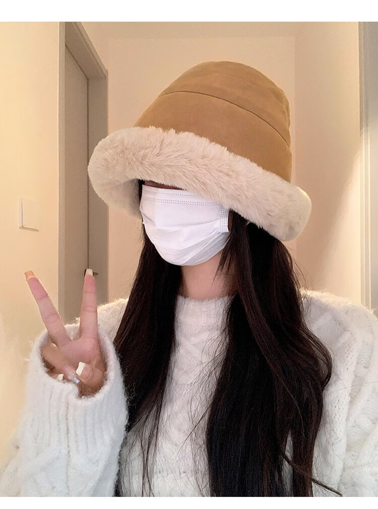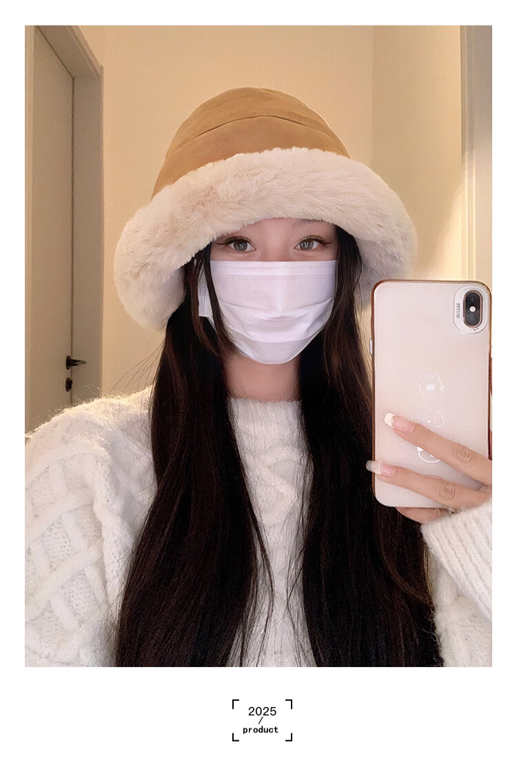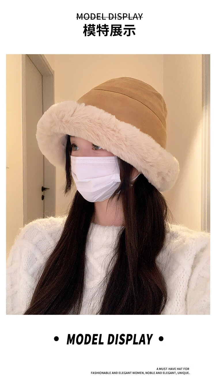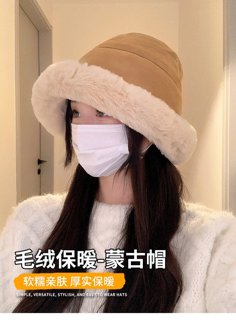 Xue Qianman hat women's autumn and winter new style warm solid color splicing plus velvet thickening high-end Mongolian hat versatile and small face