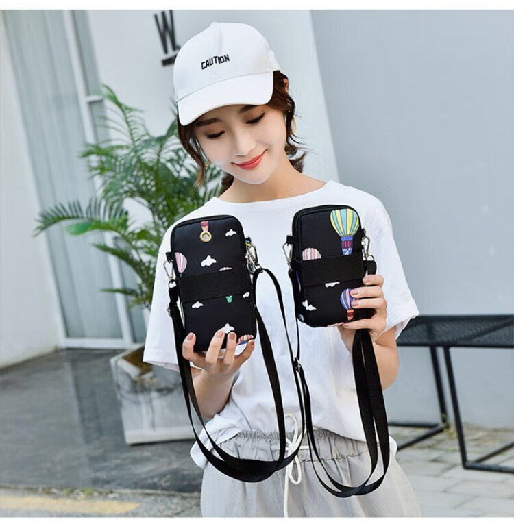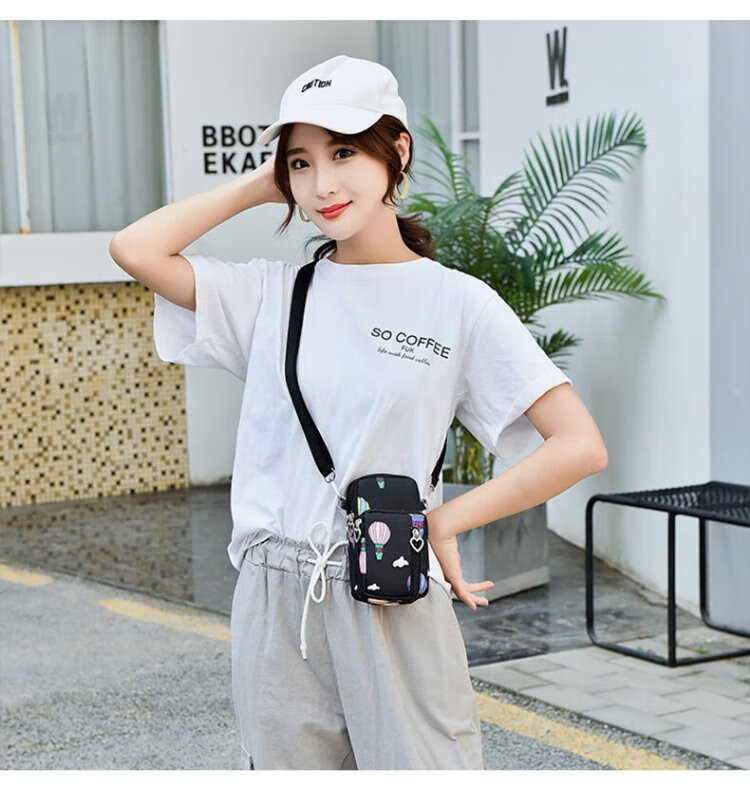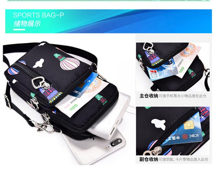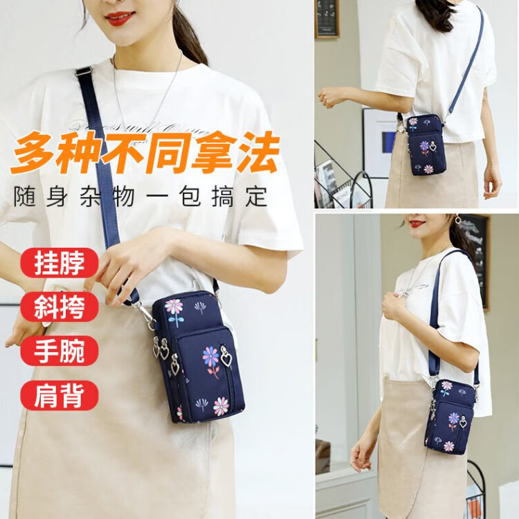 XITU mobile phone bag women's cross-body Korean version summer halter neck mobile phone bag portable wrist coin purse running arm bag dark blue graffiti (large size)