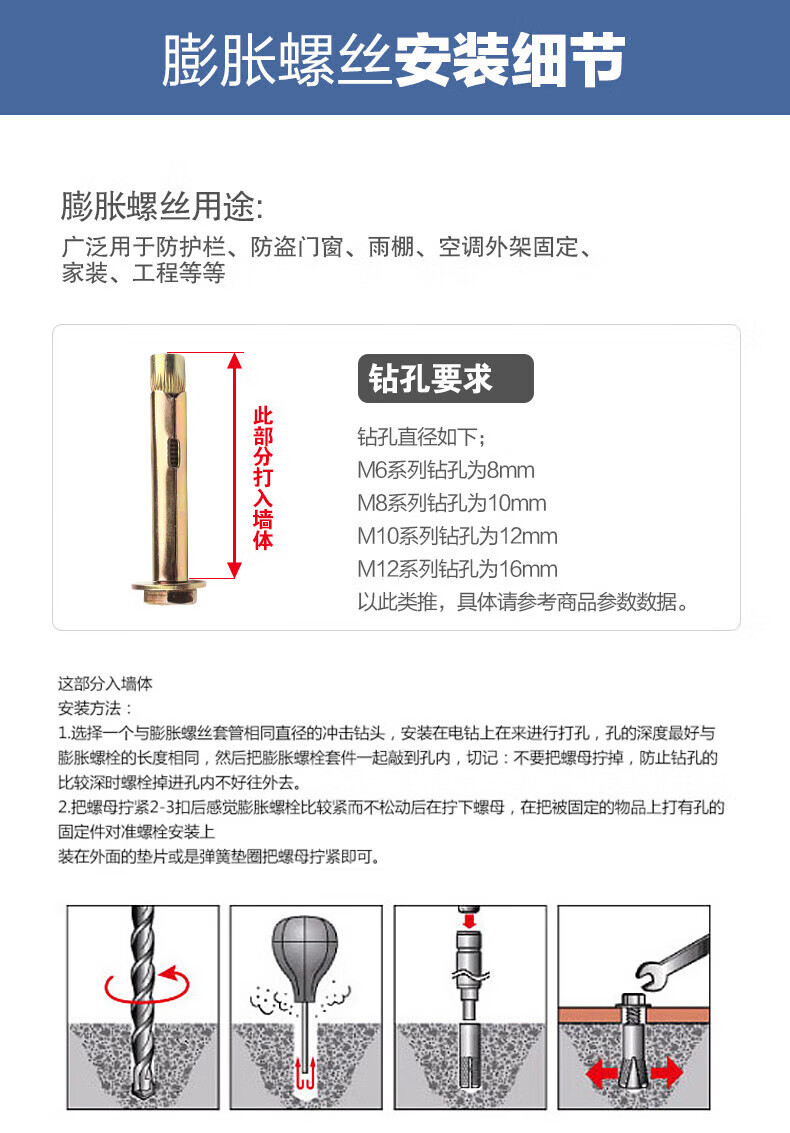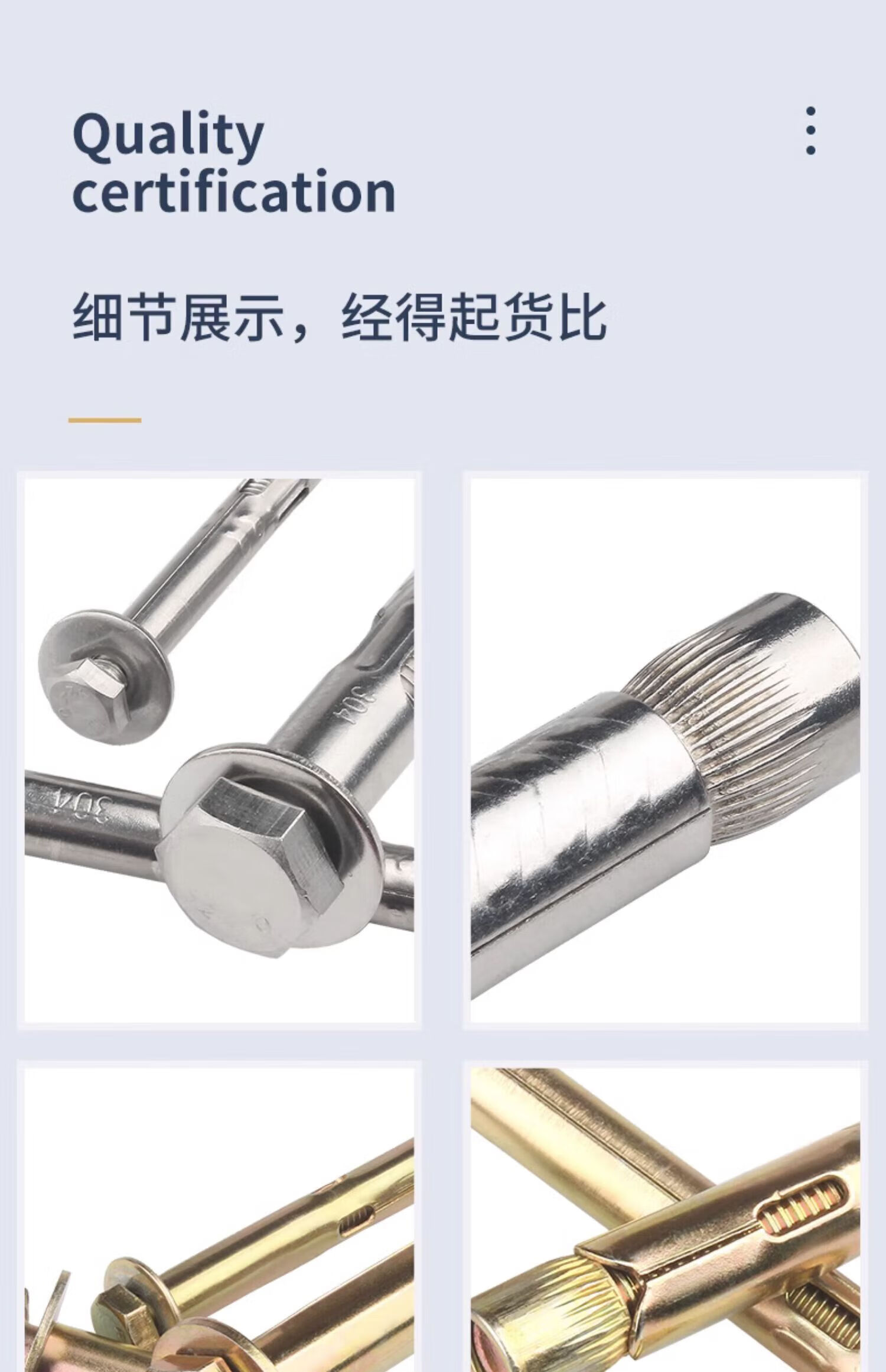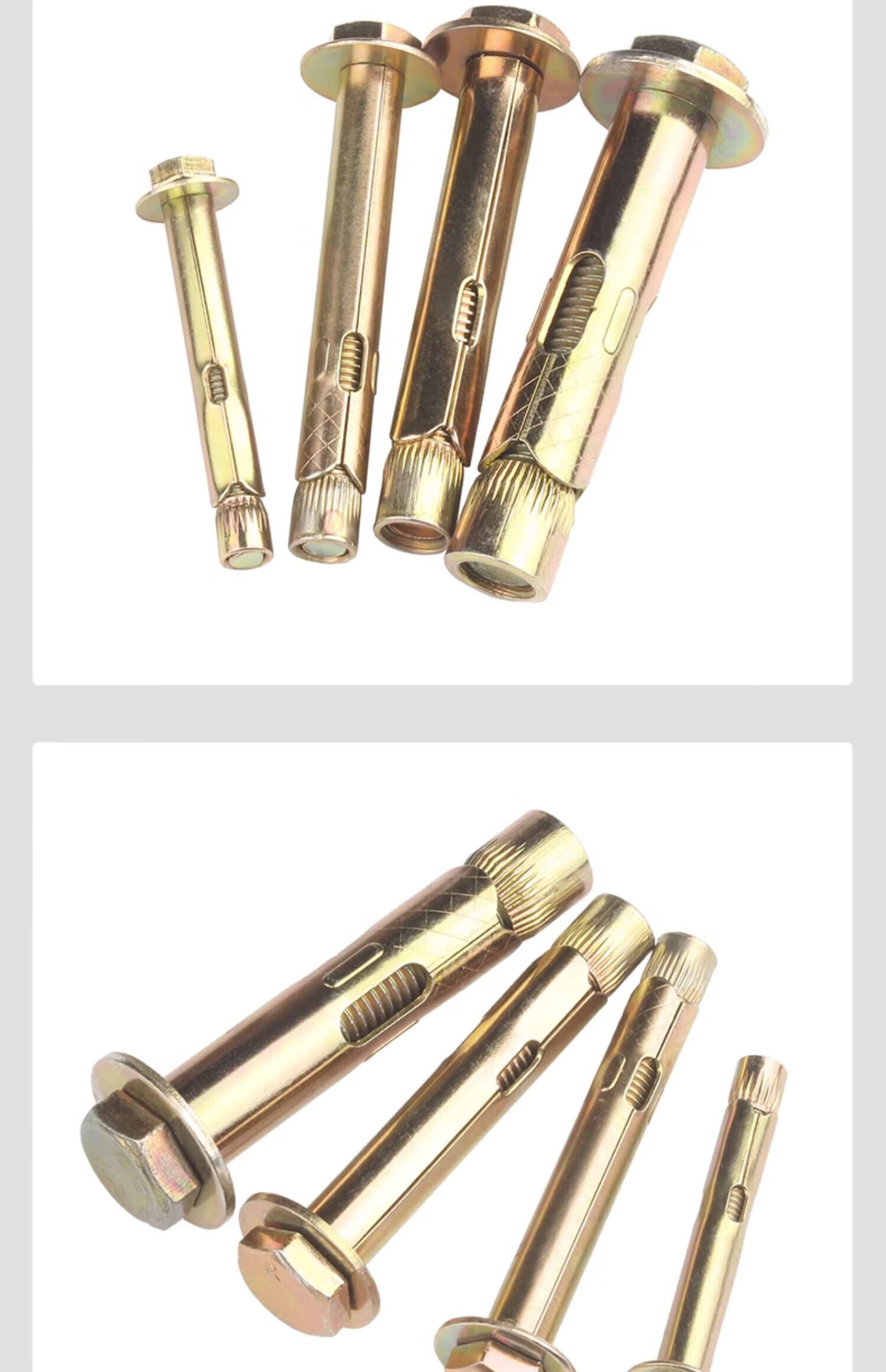 Peifan cone cap type expansion bolt external hexagonal internal expansion screw carbon steel color zinc plated M8*100 (pack of 30)