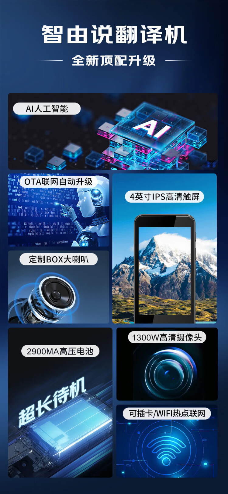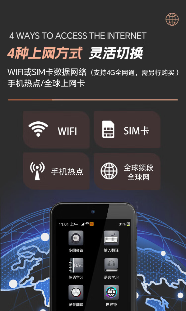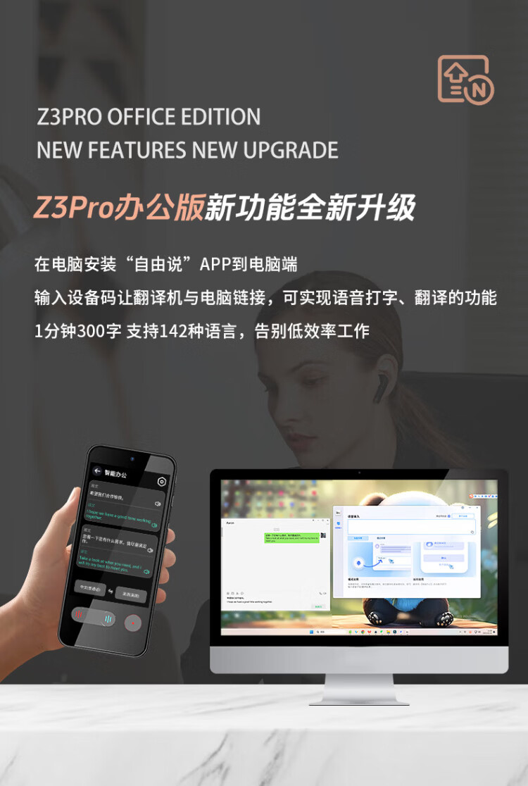 Zhiyoushuo Translator 2.0, the new Z3PRO office translation headset version, can make video and voice calls online, offline, multi-language, travel abroad, spoken language real-time translation artifact