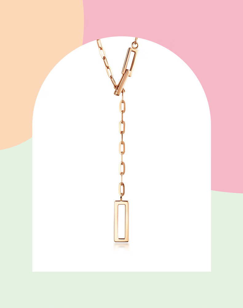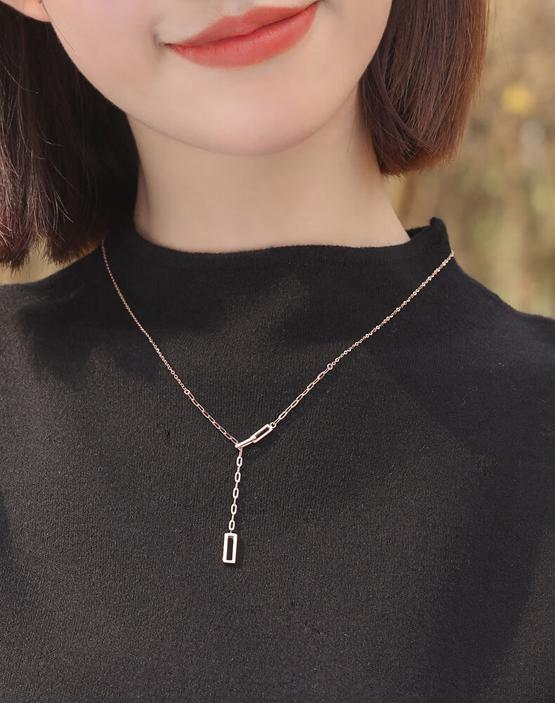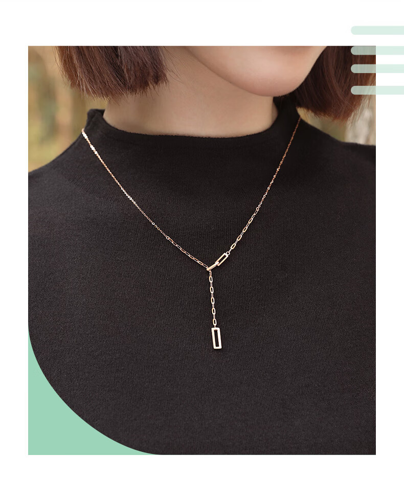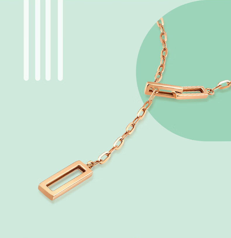 Chow Sang Sang Square Necklace Mint 18K Rose Rectangular Chain Set with Pendant 92505N Price 47cm
