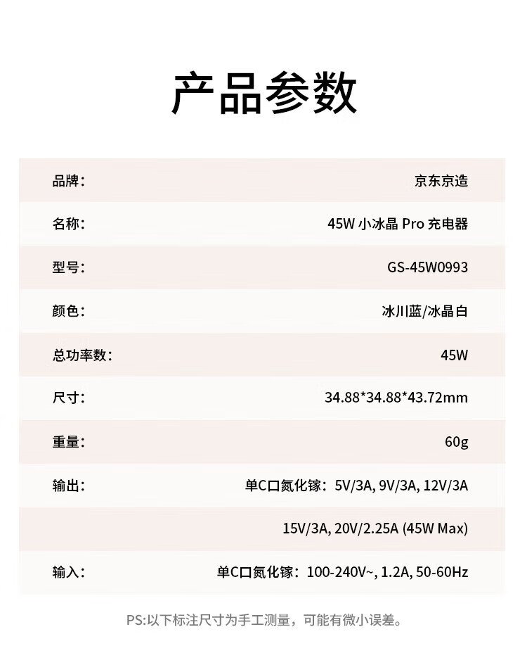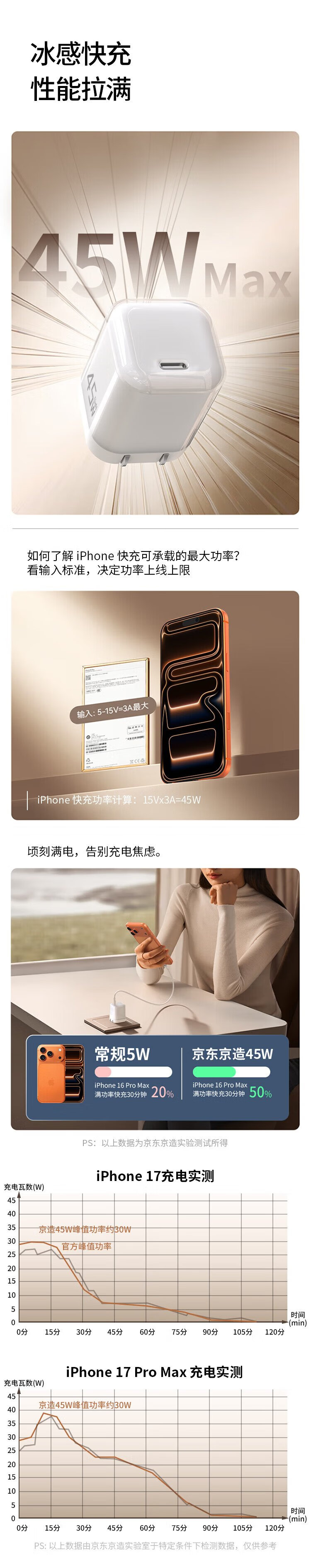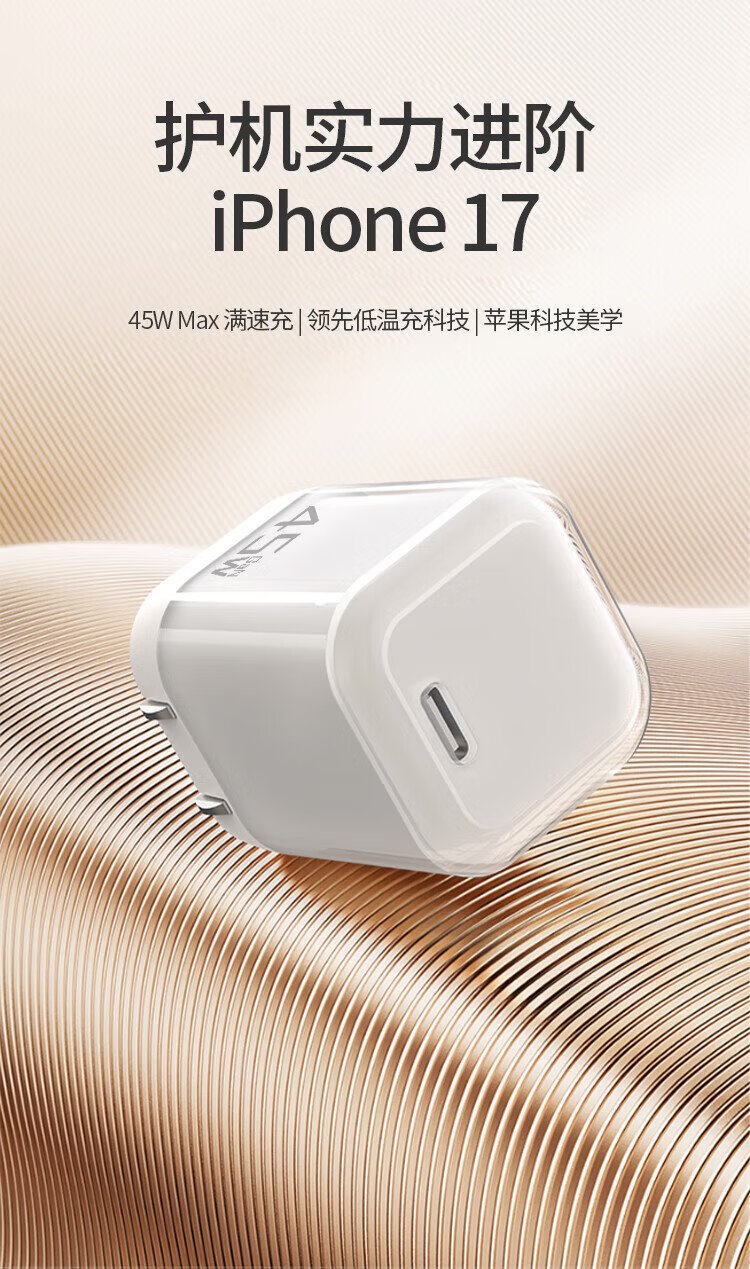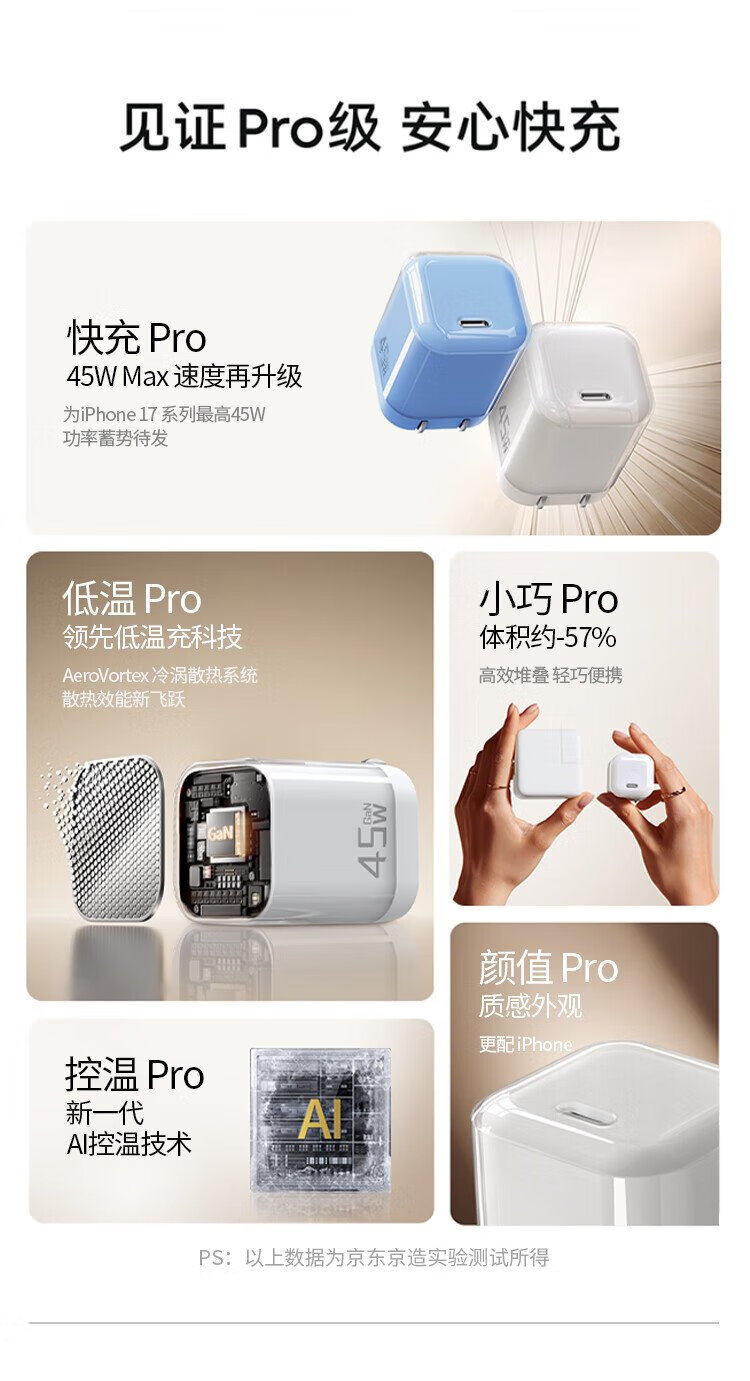 京东京造【iPhone17/16专属】45W氮化镓苹果充电器iPhone17/16 promax充电头type-c低温快充兼容40W35W快充