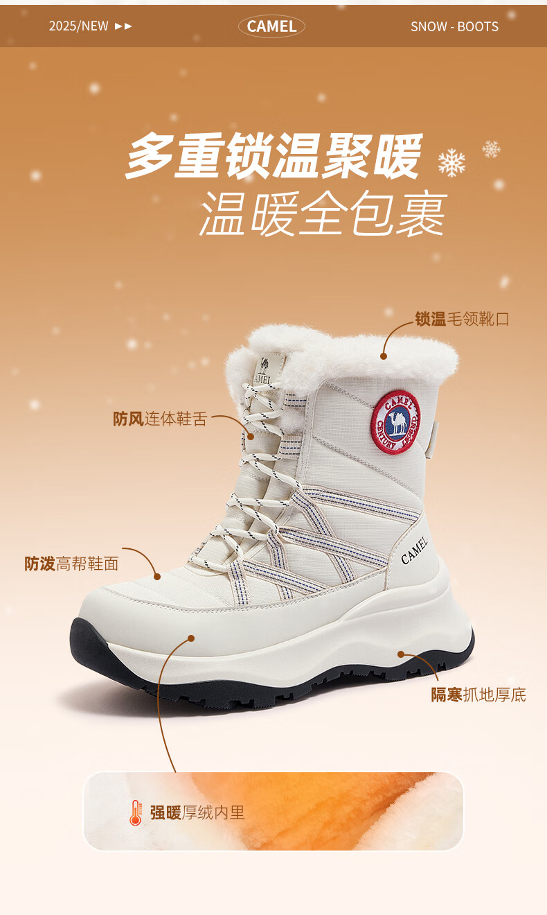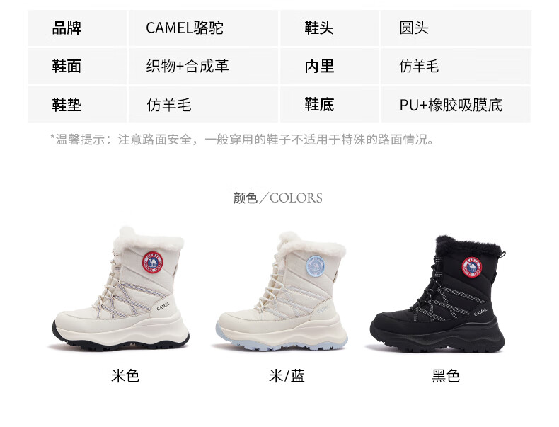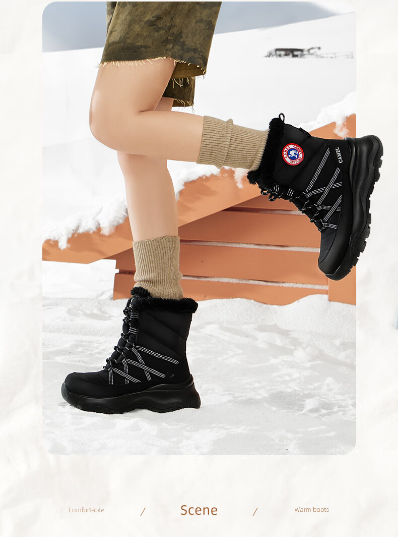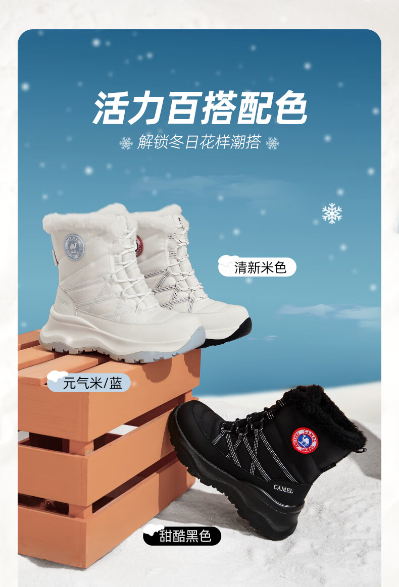Camel (CAMEL) Lava Snow Boots Women's Lazy Fur Shoes Winter Increased Coldproof Casual Boots L25W577050 M/Blue 39