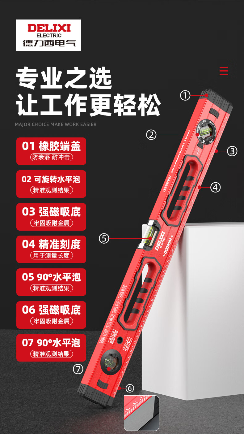 DELIXI ELECTRIC level high-precision ruler with strong magnet small flat water ruler slope measurement balance ruler mini 110mm