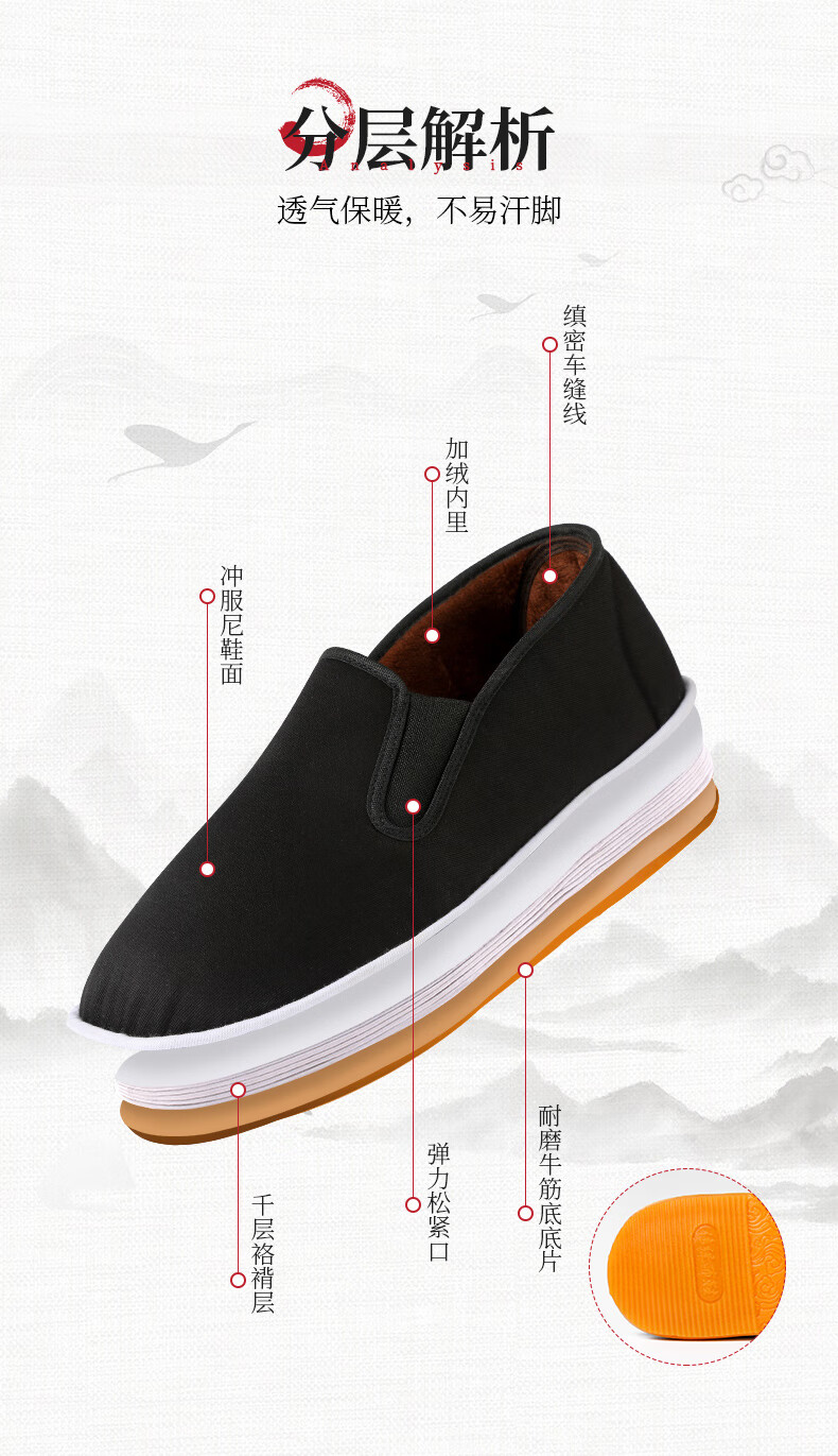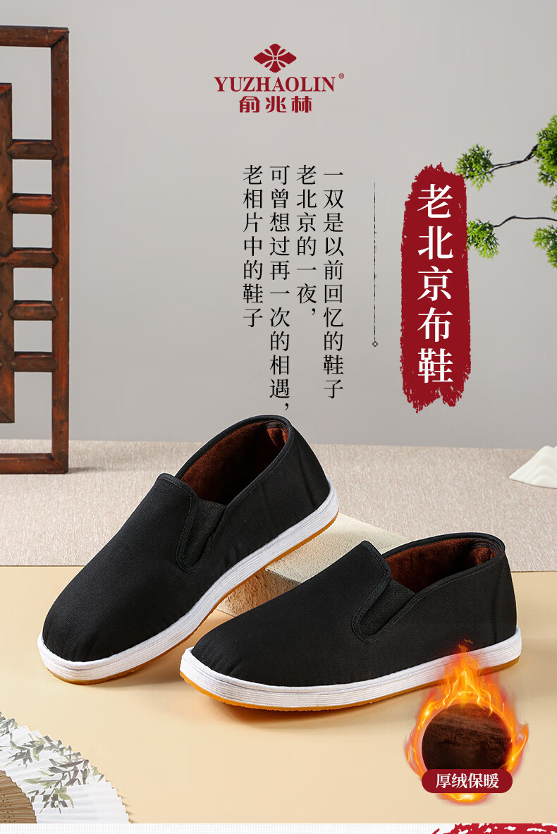 Yu Zhaolin Old Beijing Cloth Shoes Men's Winter Cotton Shoes Warm Thousand Layer Beef Tendon Bottom Cloth Bottom Thickened and Velvet Middle-aged and Elderly Size 41