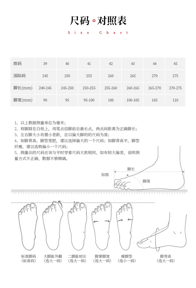 China (cm) 36 - 37 38 - 39 40 - 42 43 - 44 45 - 47