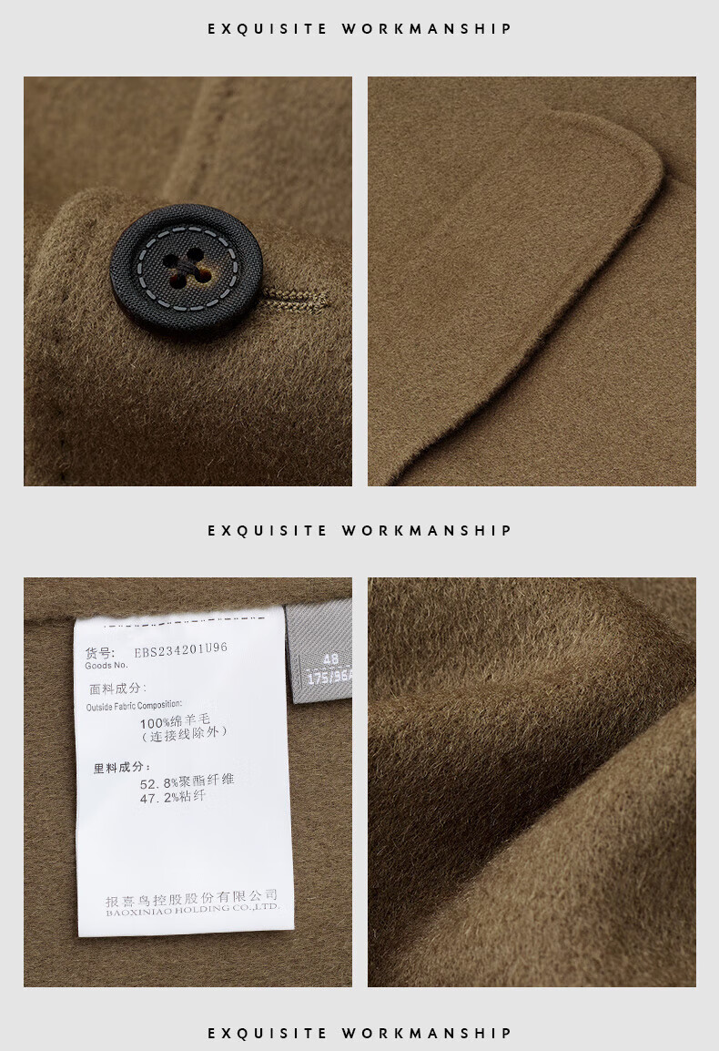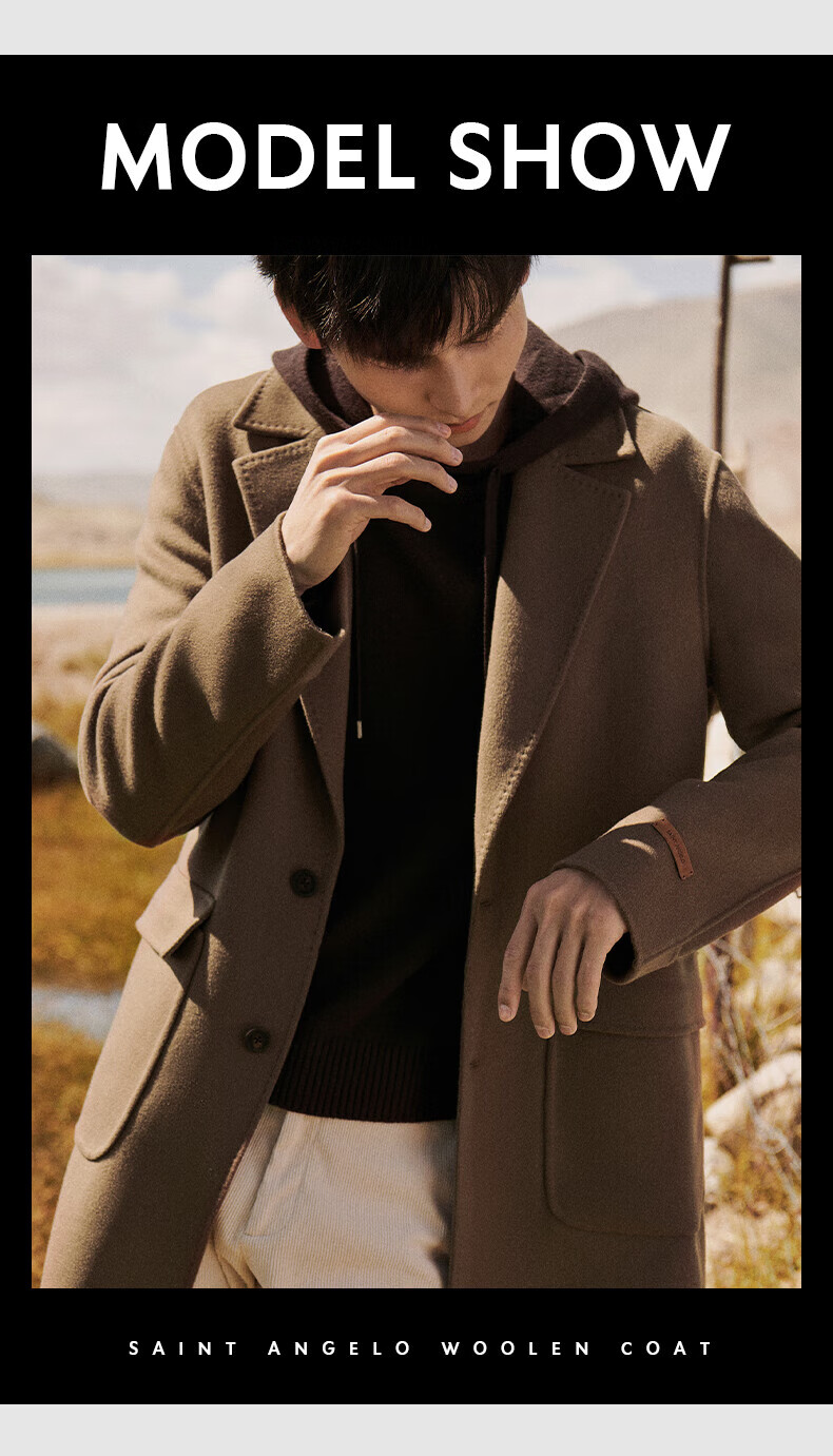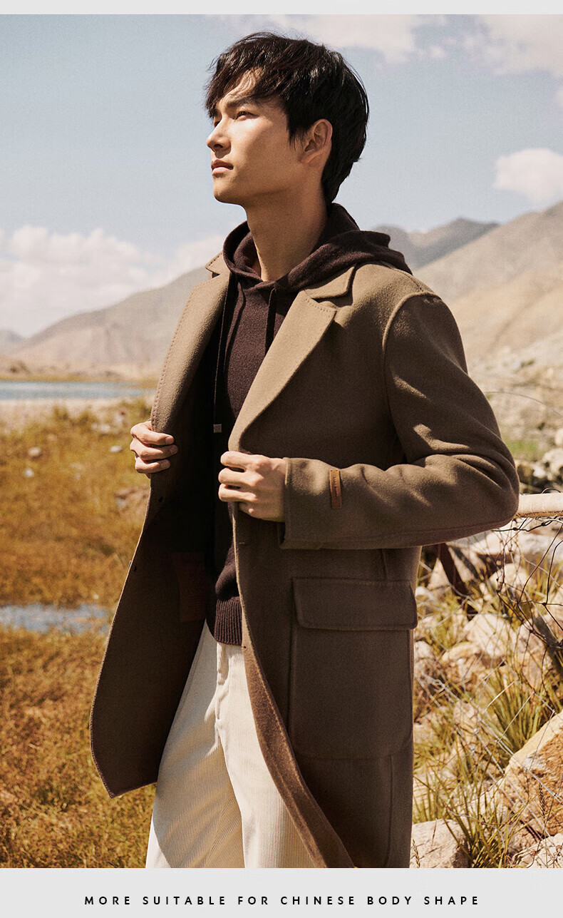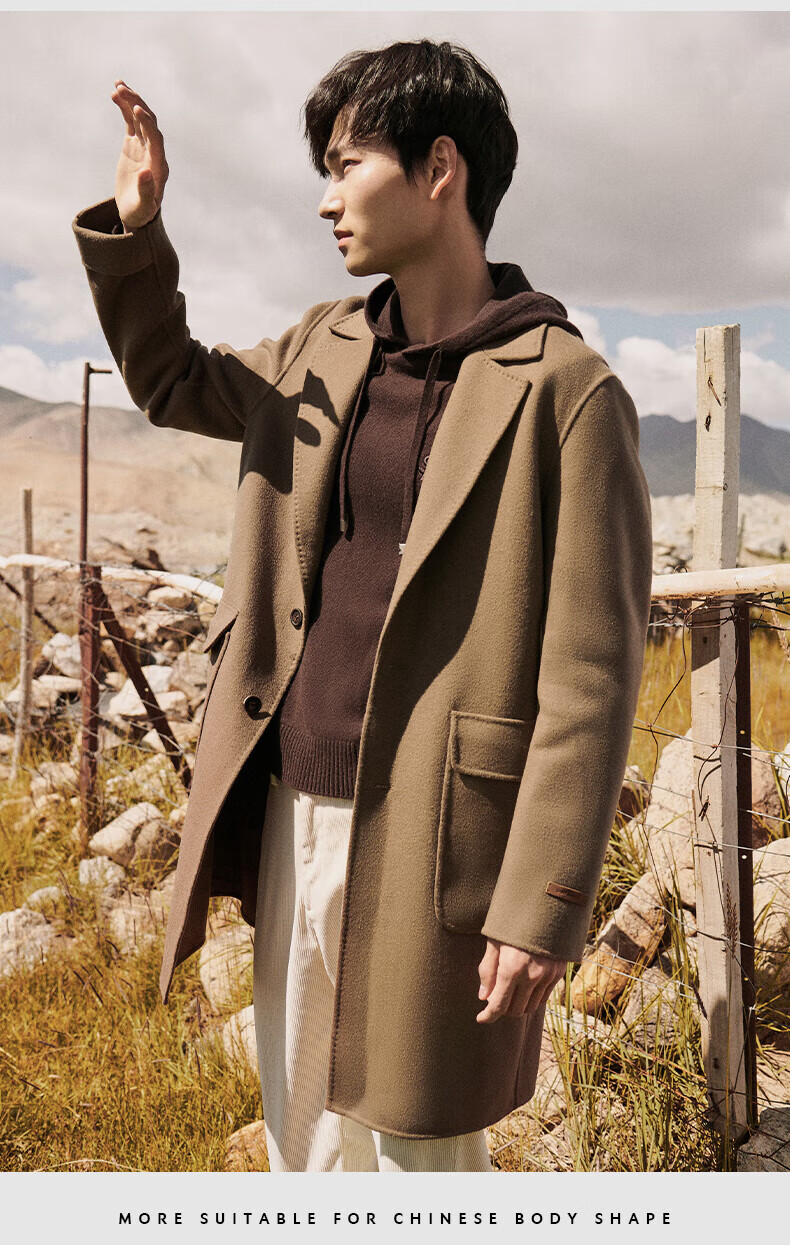 Angel Bird double-sided woolen long coat men's casual lapel thin coat EBS234201U beeswax color M 46