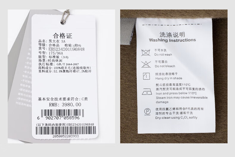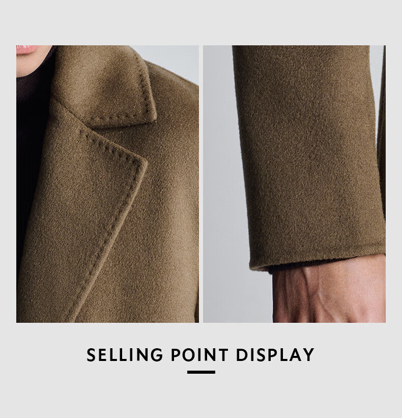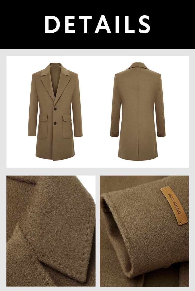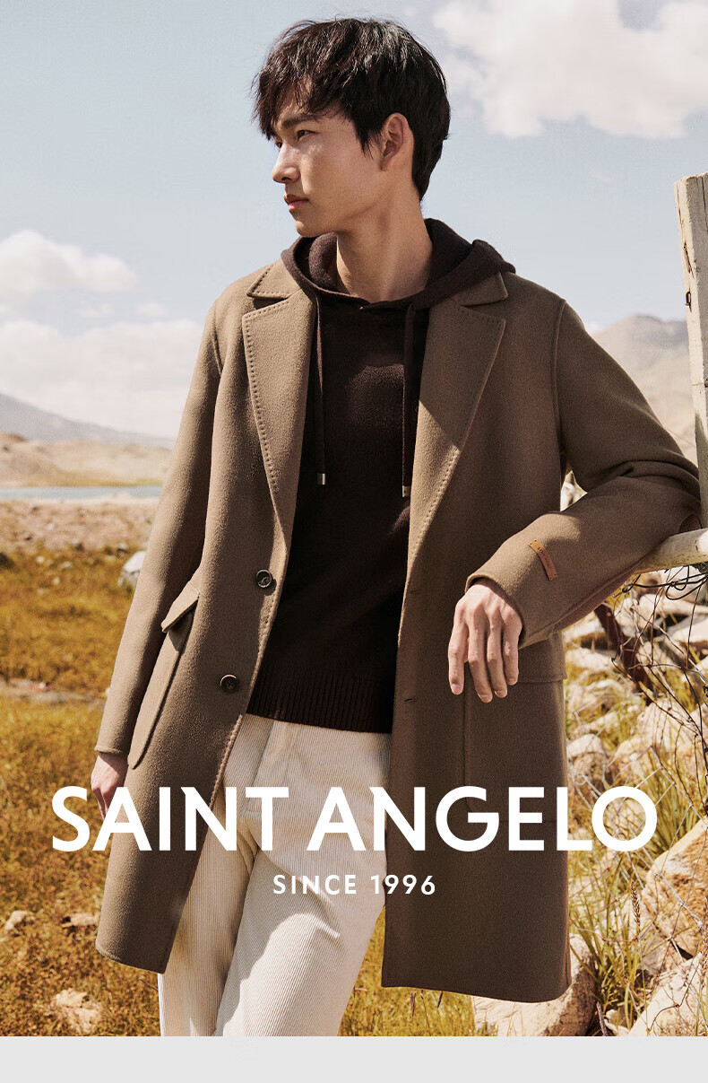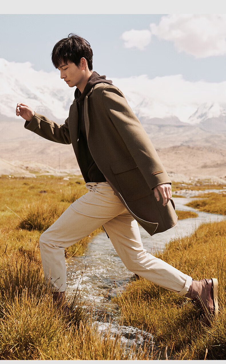 Angel Bird double-sided woolen long coat men's casual lapel thin coat EBS234201U beeswax color M 46