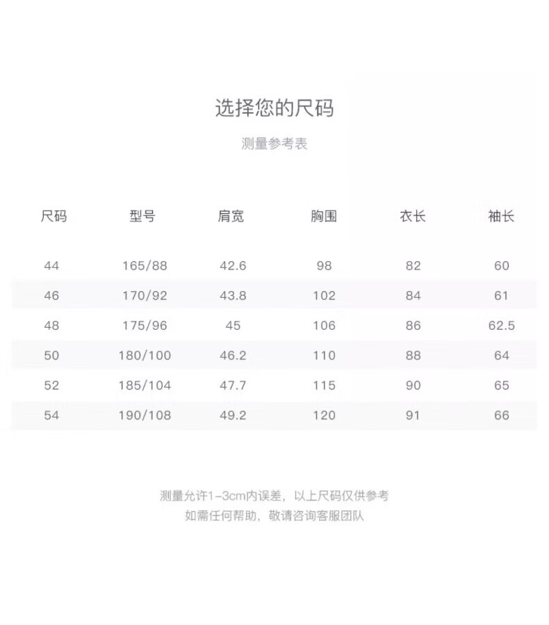 China (cm) 165 / 88-90 170 / 96-98 175 / 108-110 180 / 118-122 185 / 126-130