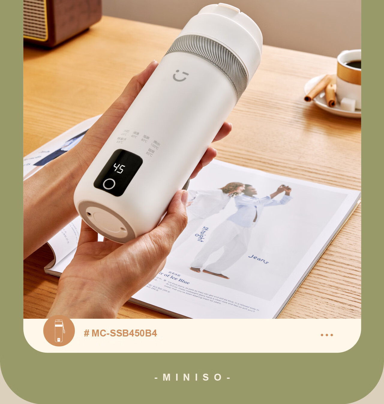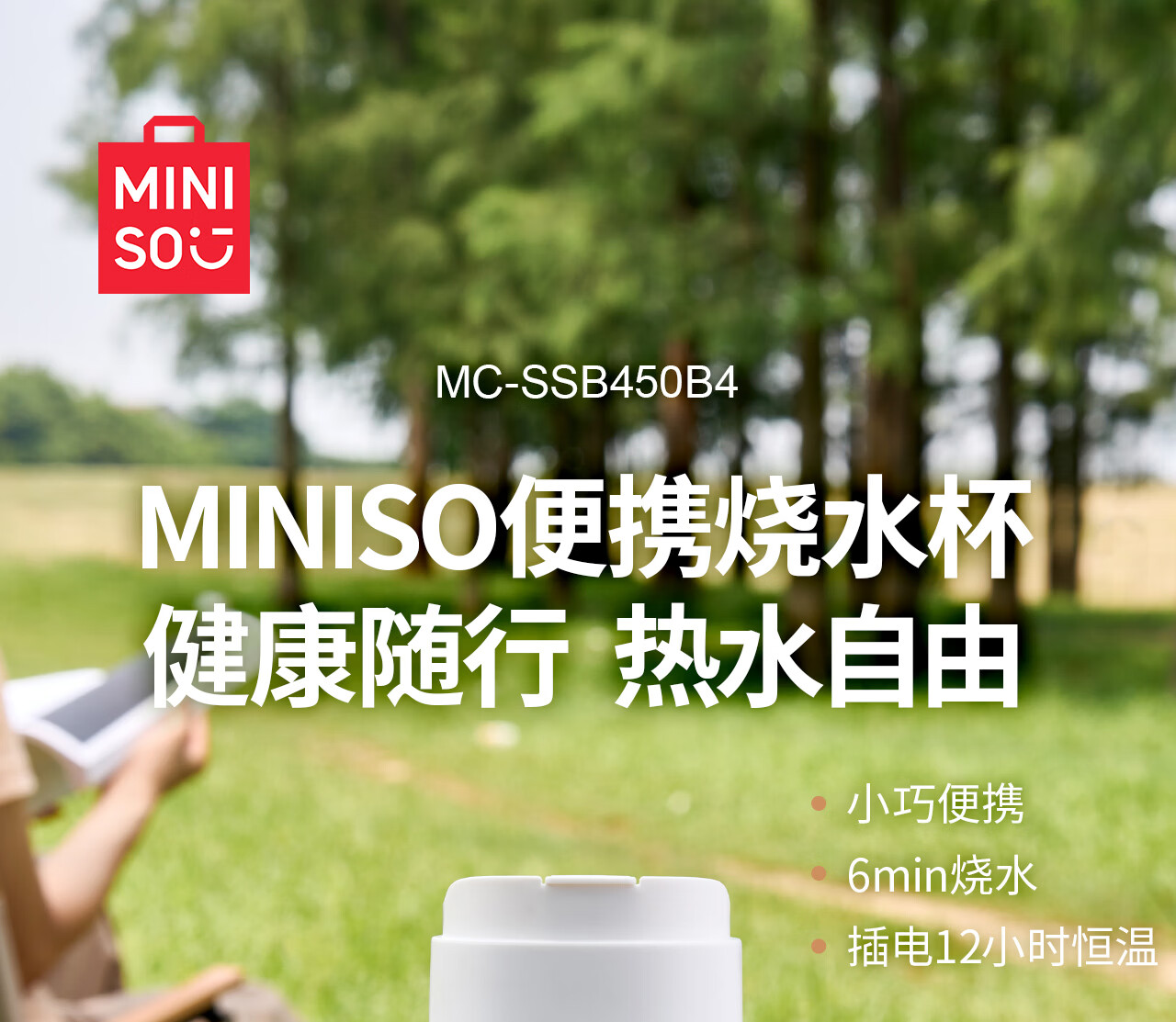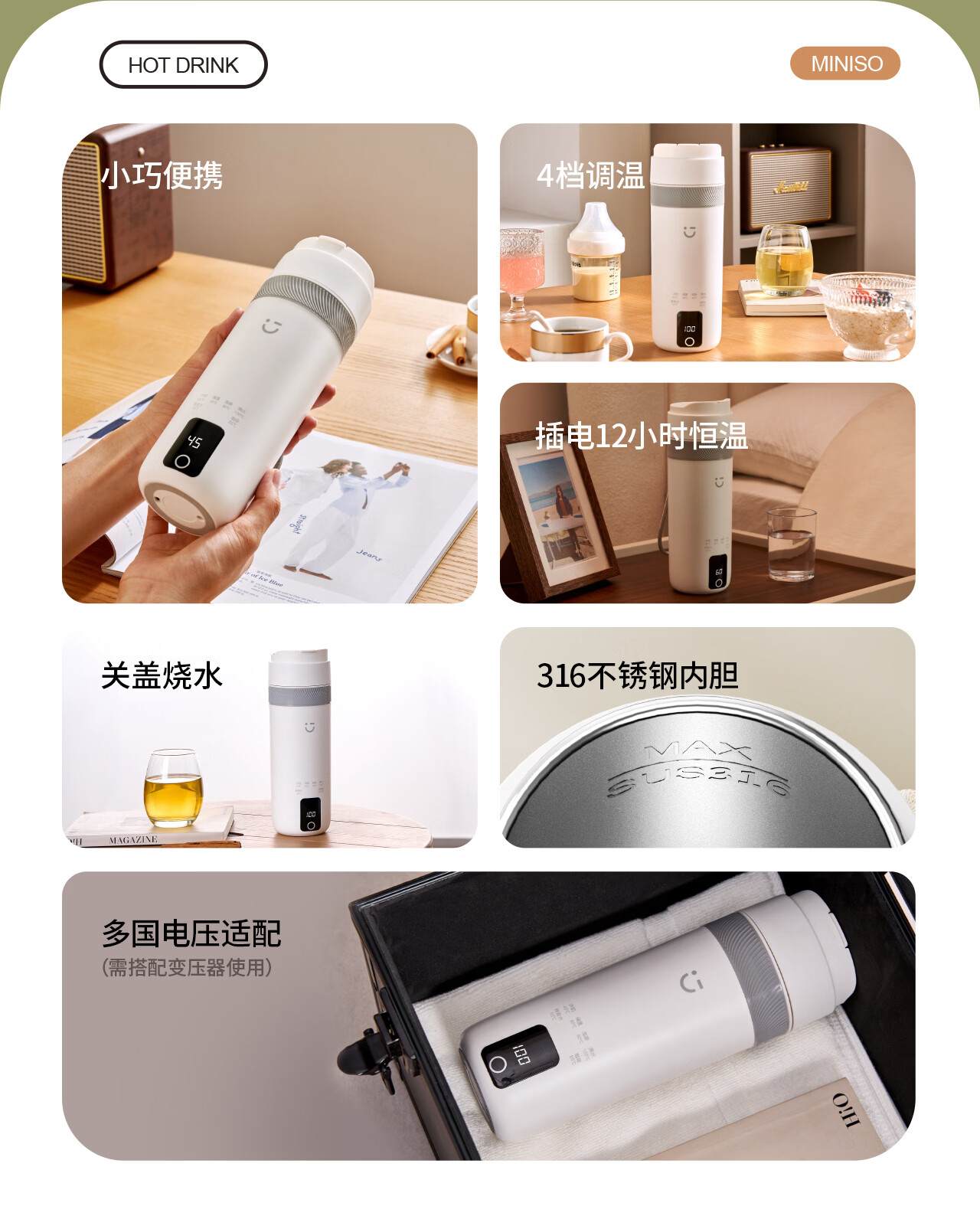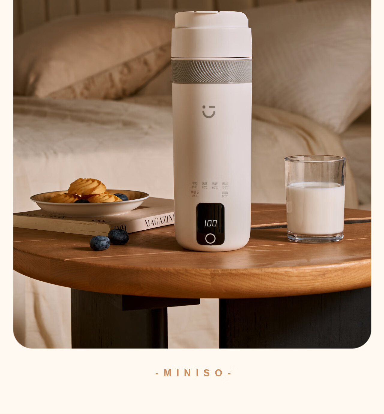 MINISO Electric Hot Water Cup Portable Water Boiling Cup 450ml Insulated Cup Portable Kettle Small Electric Kettle Travel Tea Making Baby Going Out Brewing Milk Thermostatic Cup