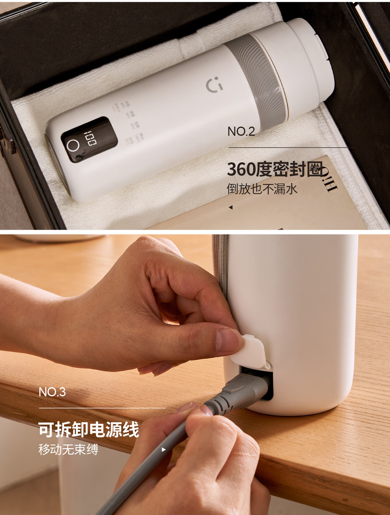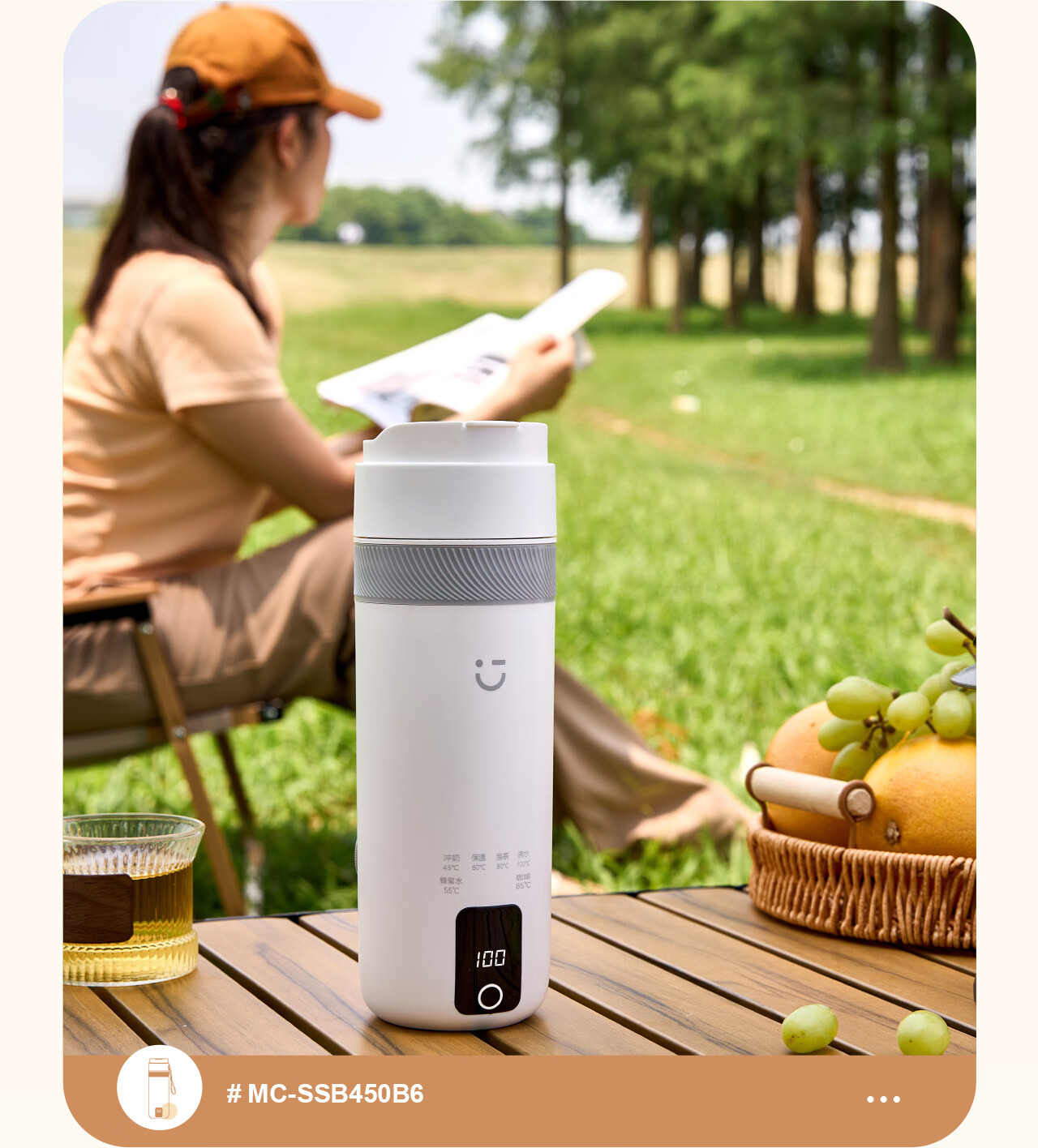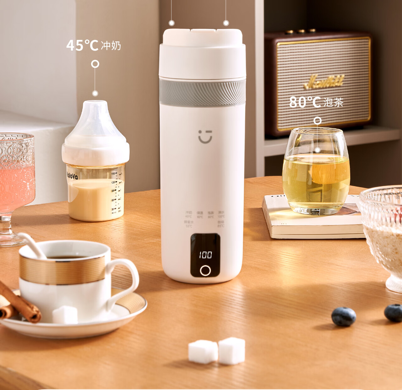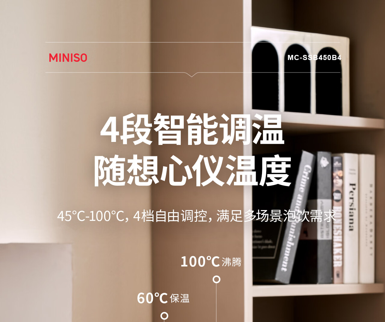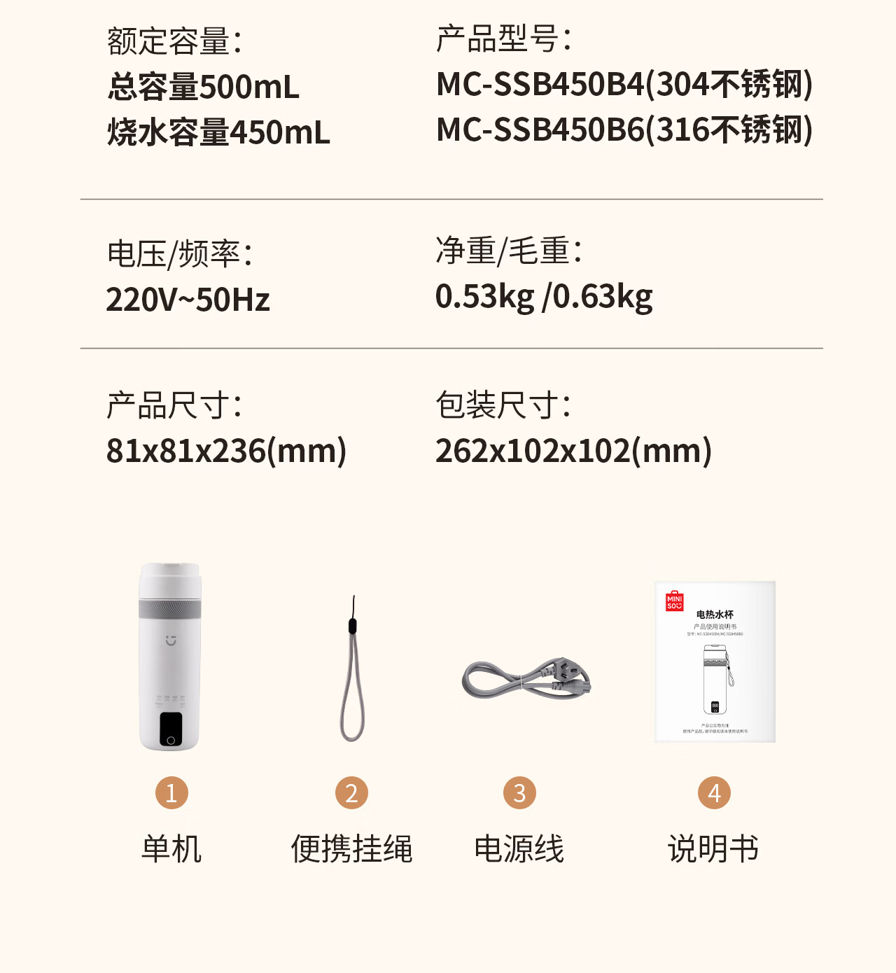 MINISO Electric Hot Water Cup Portable Water Boiling Cup 450ml Insulated Cup Portable Kettle Small Electric Kettle Travel Tea Making Baby Going Out Brewing Milk Thermostatic Cup